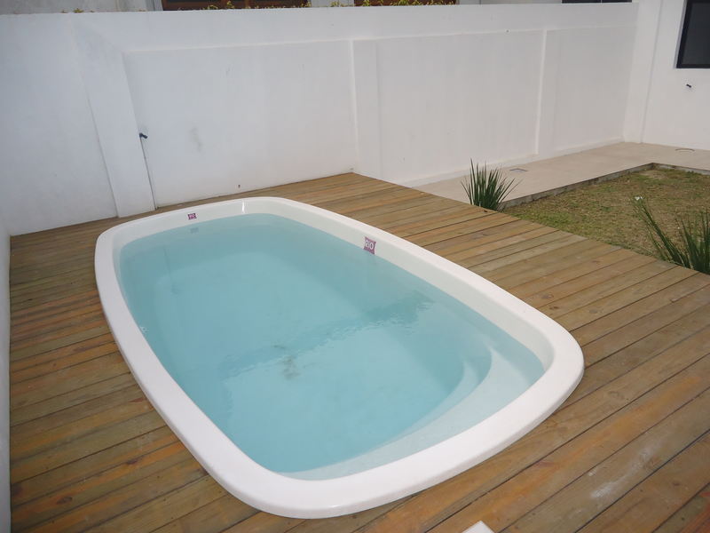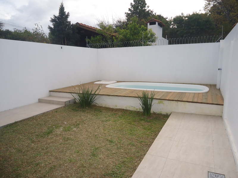 A área externa oferece um maravilhoso pátio aos fundos da residência que pode ser acessado pelo living, o espaço dispõe de calçamento e gramado, além de deck com uma bela piscina para se distrair e relaxar durante os dias de verão. E por fim, a área frontal do sobrado também possui calçamento e oferece estacionamento para 2 veículos com cobertura através de um belo pergolado industrial.