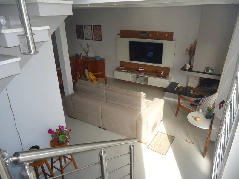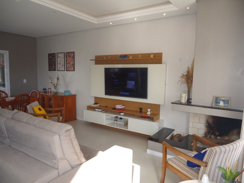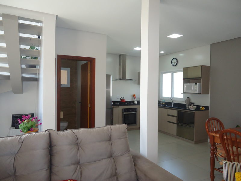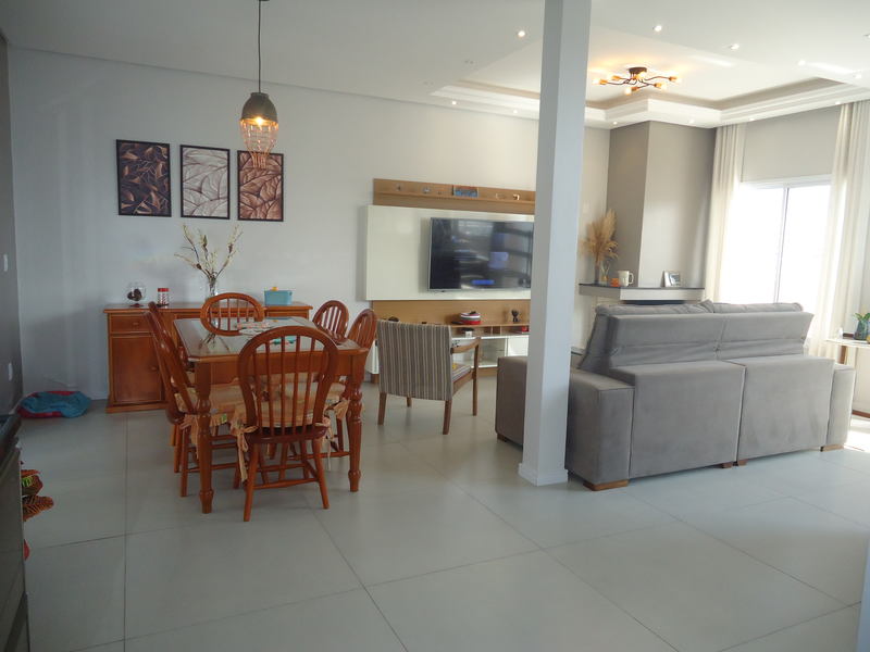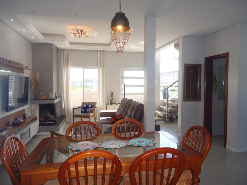 Em seu andar térreo, a residência dispõe de uma ampla área social em conceito aberto com ambientes harmônicos, logo ao adentrar notamos primeiramente a aconchegante sala de estar dispondo de painel planejado para TV, lareira de canto com nicho para lenhas, além de teto rebaixado em gesso com iluminação especial em LED; Na sequência do ambiente, observamos a sala de jantar que oferece um ótimo espaço para promover almoços e jantares com seus familiares e amigos, e para além, também dispõe de acesso direto para a área externa da casa; Em frente a sala está localizado o lavabo que atende a área social; Ao lado do lavabo e completando o ambiente aberto da área social temos a cozinha da residência totalmente planejada com móveis de fino acabamento e ótimo espaço para seus eletrodomésticos.