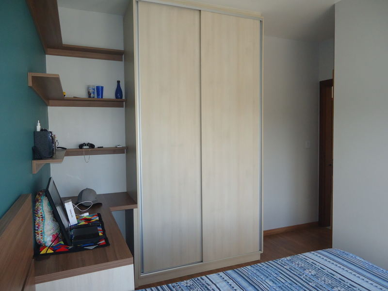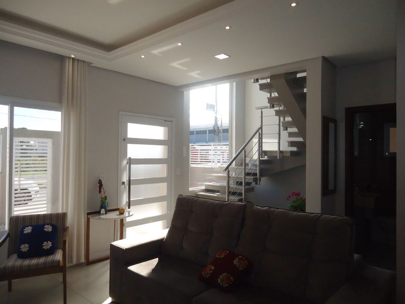 O imóvel é totalmente murado com grade de vidro na área frontal, interfone, portão eletrônico e garagem coberta para 2 veículos. Além disso, o imóvel está em perfeito estado de conservação e permanecem nele todos os móveis planejados!