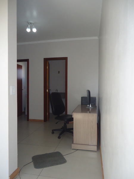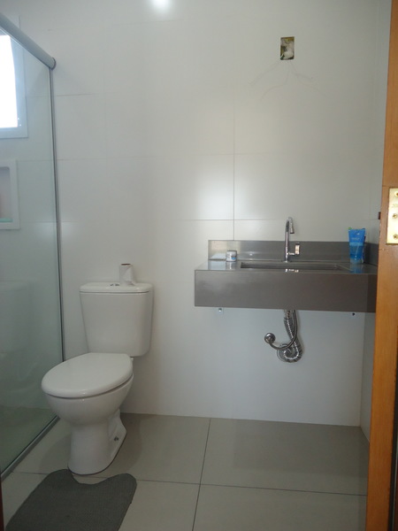 Retornando para a área interna da casa, vamos para o seu segundo pavimento, este que pode ser acessado através da moderna escadaria localizada ao lado da porta principal de entrada. Logo aos pés da escadaria temos o 1º dormitório do sobrado que se caracteriza como suíte, dispondo de um amplo dormitório com roupeiro de canto planejado, espera para ar condicionado split, sacada privativa com vista para a área frontal da casa e banheiro completo com box de vidro e nicho embutido para cosméticos; Seguindo o corredor de acesso aos demais ambientes do segundo andar, chegamos a uma pequena sala íntima aberta que pode ser utilizada facilmente como escritório; Esta sala nos leva, em uma sequência, para o 2º dormitório que oferece um amplo espaço com móveis planejados e ótima iluminação natural; Ao lado está o 3º dormitório que além de possuir excelente espaço e móveis planejados, também dispõe de um amplo terraço que percorre toda a lateral da área externa aos fundos da residência com vista para a piscina; Continuando, temos ainda o banheiro social completo com pia esculpida e box de vidro com nichos embutidos para cosméticos; E finalizando, também está neste piso a lavanderia do sobrado.