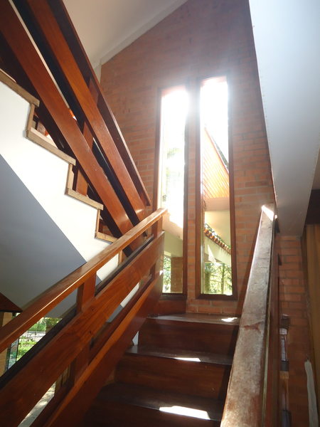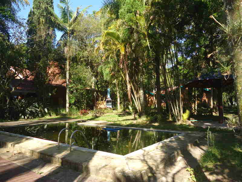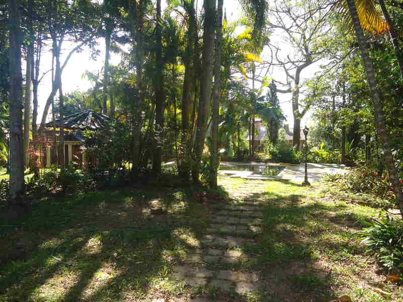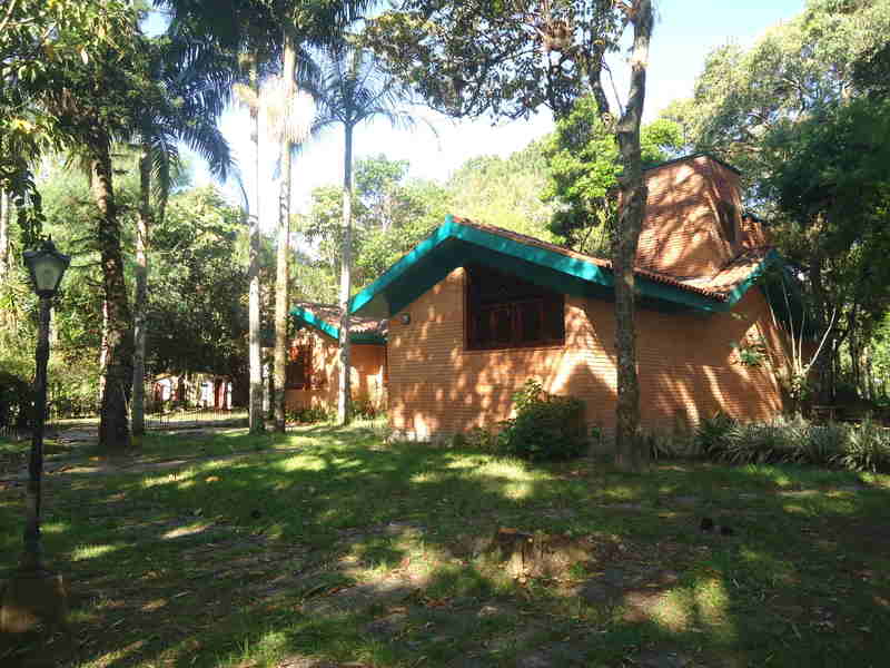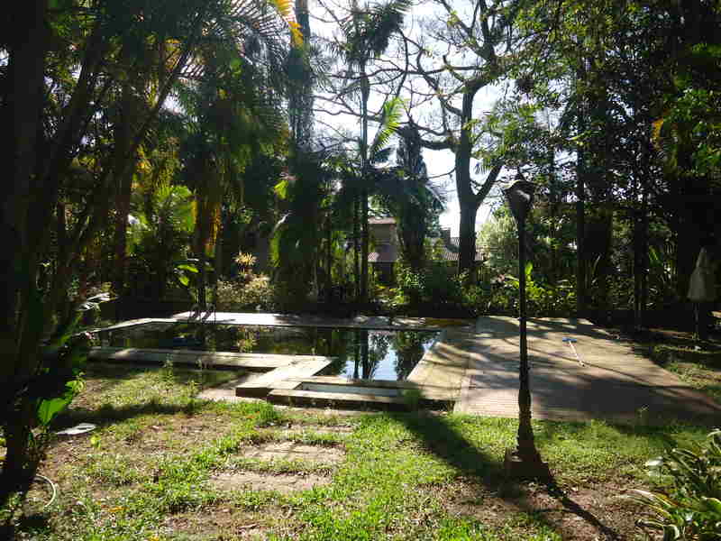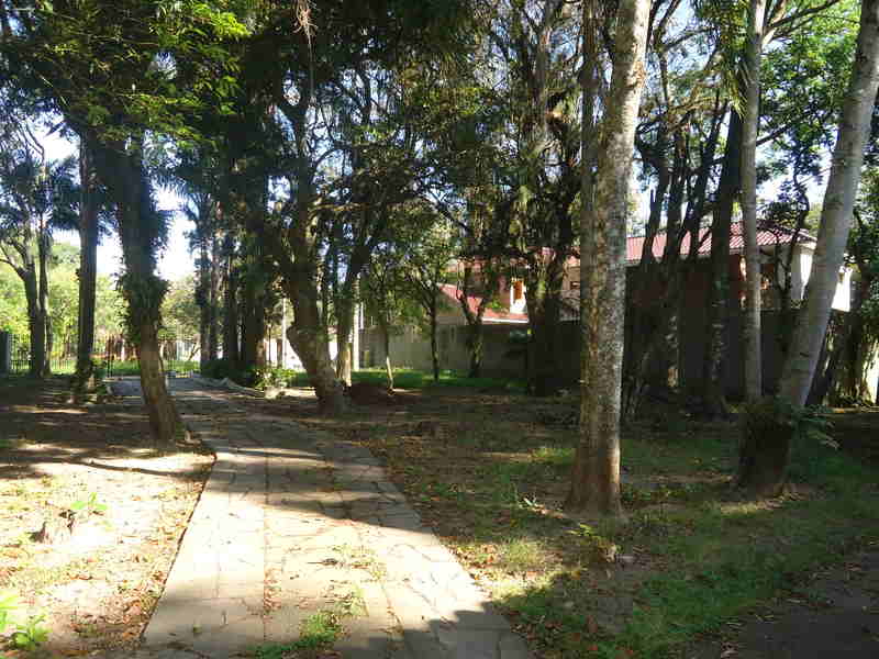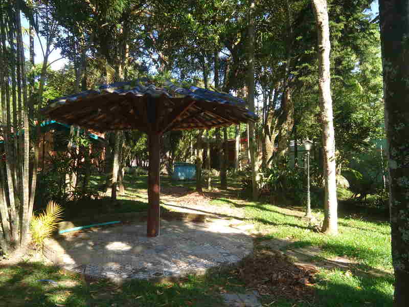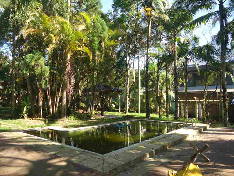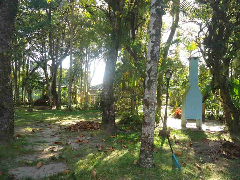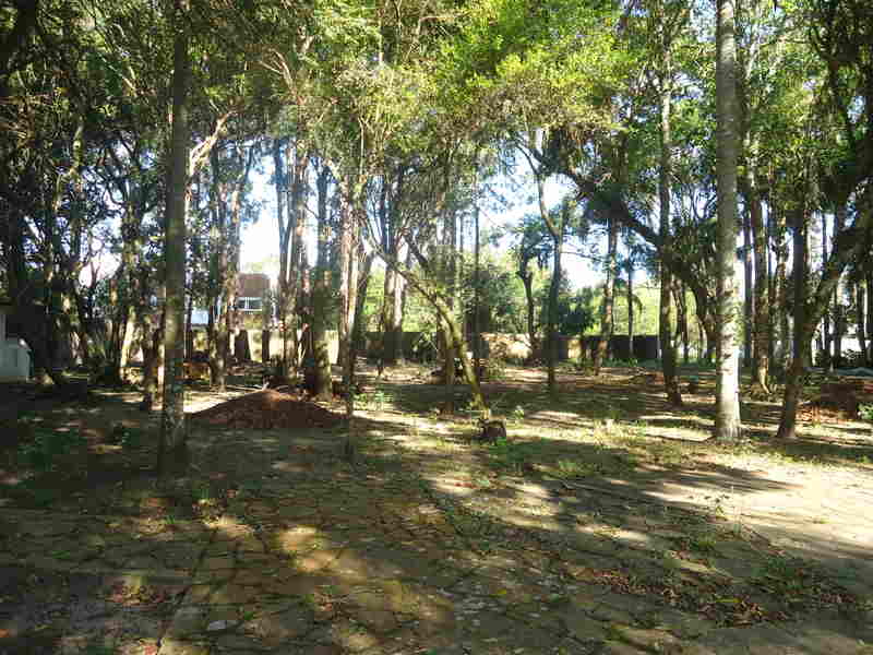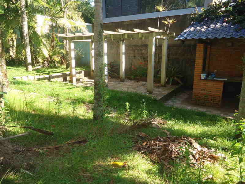 Amplo e agradável pátio todo murado com quiosque, piscina, caminhos de circulação calçados. Possui ainda espaço gourmet com churrasqueira e lareira.