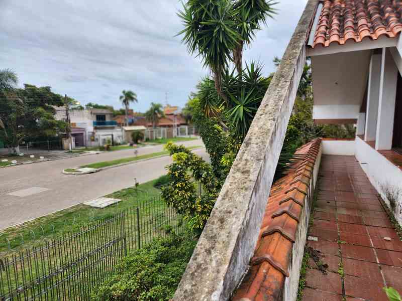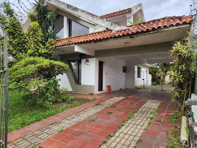 Clássico sobrado à venda no Laranjal em Pelotas. Ao Chegar na residência observados está recuada com grades e portão eletrônico; Entrada lateral na parte em que possui 2 vagas cobertas e logo em seguida mais duas vagas de estacionamento no pátio. Entrando na porta de acesso ao sobrado encontramos a sala de estar com lareira, pé direto alto e com amplas aberturas em madeira. Ao subir a escada estará no mezanino que possui acesso ao terraço. Voltando ao térreo encontramos o corredor que dá acesso aos 2 dormitórios, banheiro, cozinha planejada e área de serviço. Saindo pela porta da cozinha encontramos o pátio com piscina, canil, churrasqueira externa, todo murado e com partes de circulação calçadas. Ainda nos fundos do imóvel possui salão de festas com churrasqueira, dormitório auxiliar e banheiro completo.