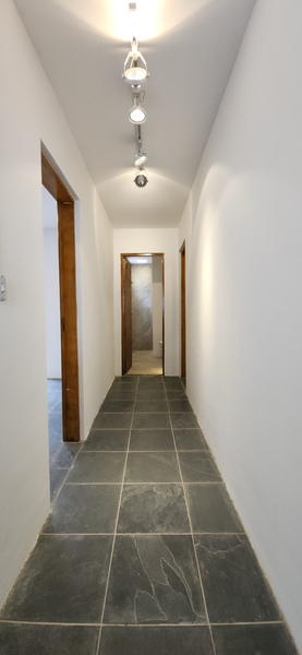 Da sala, temos o acesso ao corredor que nos leva aos 3 dormitórios; Pela direita temos a suíte com banheiro completo e banheira de hidro com porta que abre para a lateral do pátio; Pela esquerda temos o 2º dormitório com porta janela que abre para uma boa área de luz; Em frente temos o banheiro social que atende aos dormitórios; o 3º dormitório está localizado à direita ao lado da suíte;