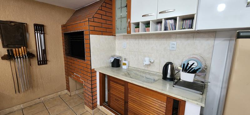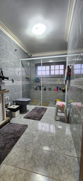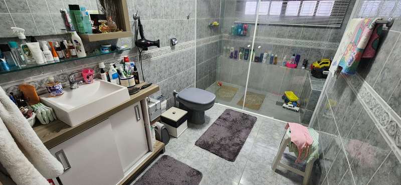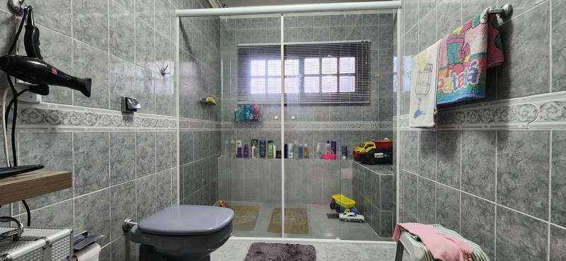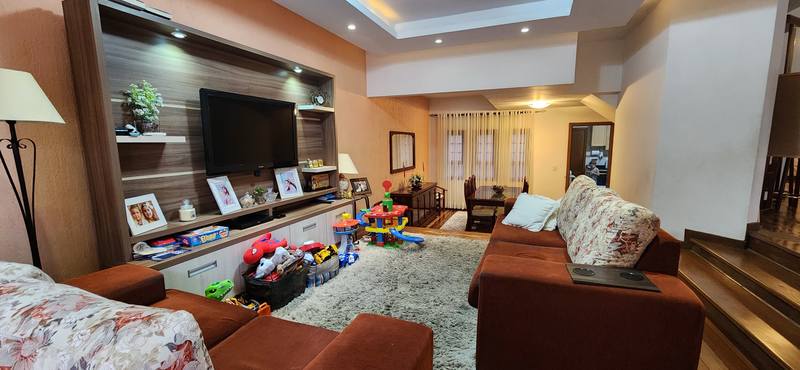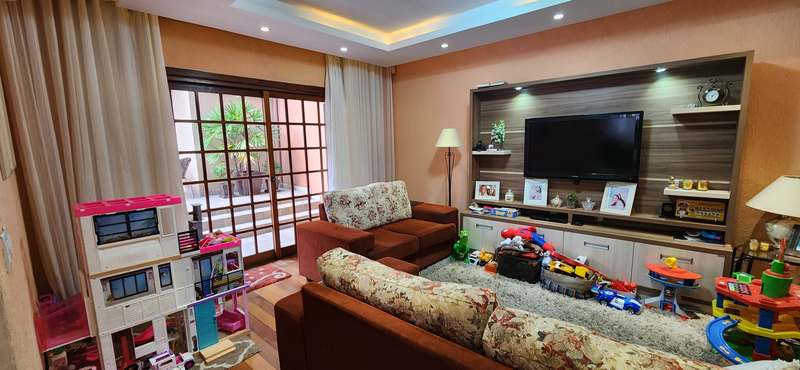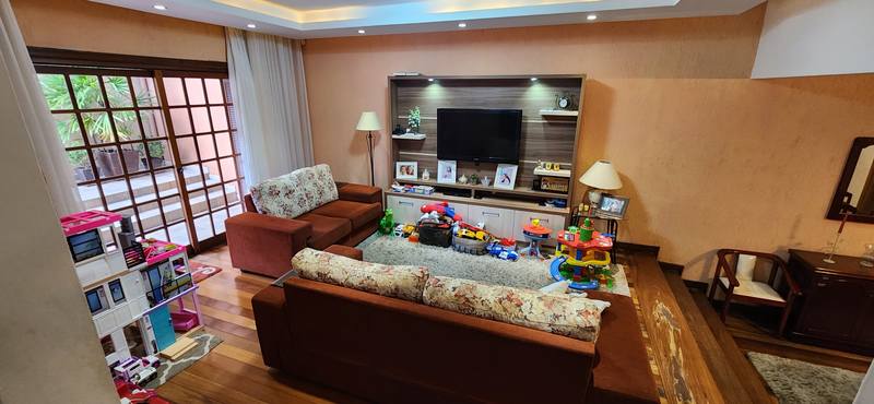 Sobrado à venda em perfeito estado de conservação na Chácara Baronesa. São 384m² privativos divididos em 2 andares. Ao entrar no imóvel podemos notar a sala íntima com lareira e bar; Ao lado temos um lavabo; Um degrau separa a sala íntima da ampla sala de estar; Porta janela abre para o pátio sendo este com piscina térmica; Pelo pátio podemos acessar o salão de festas que possui churrasqueira e excelente espaço para convivência + banheiro social; Pelo salão de festas tem uma escada que dá acesso à sala fitness com aparelhos de academia; A cozinha encontra-se no térreo bem como a área de serviço + 1 banheiro auxiliar. Retornando à sala, notamos as escadas que levam para o andar superior;