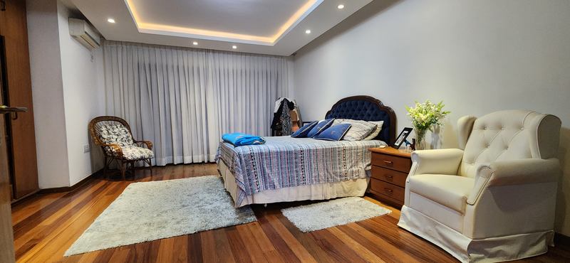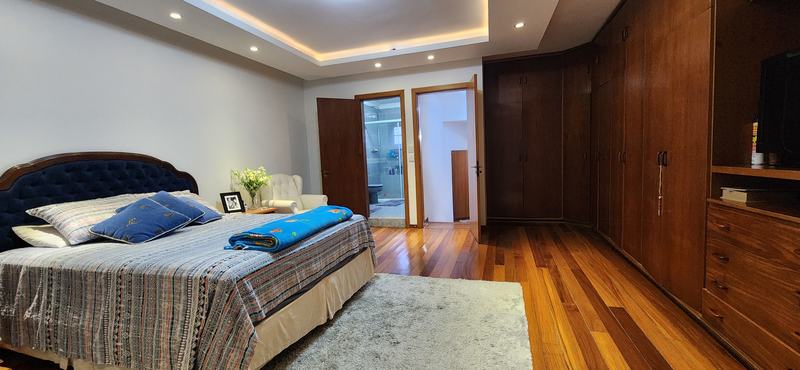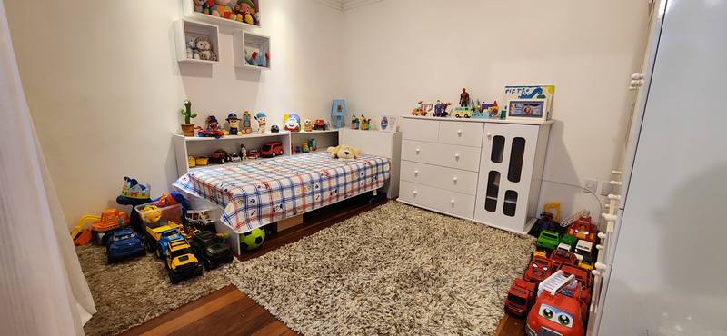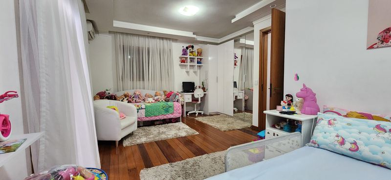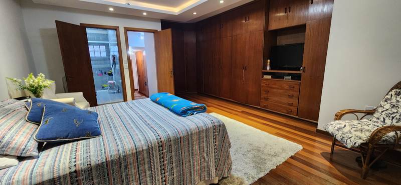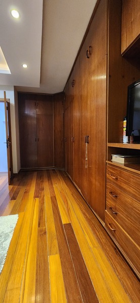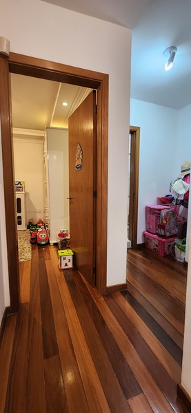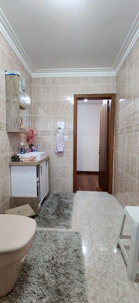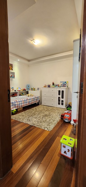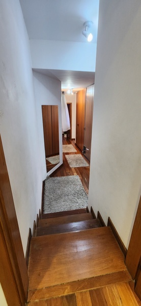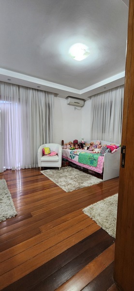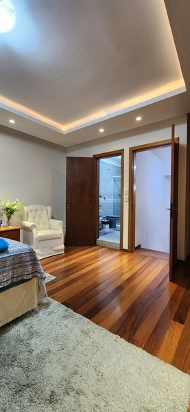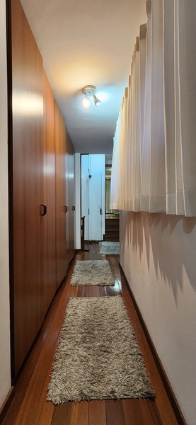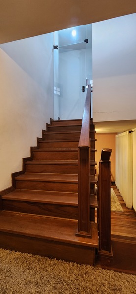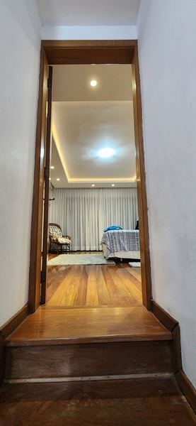 No 2º andar podemos notar os 3 dormitórios sendo 1 deles a suíte + 1 banheiro social que atende aos outros dormitórios; A parte social e os dormitórios possuem tábua corrida em excelente estado de conservação e o piso é frio nos banheiros e cozinha;