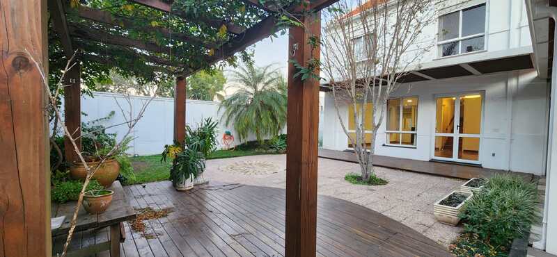 O imóvel possui 2 andares e é composto da seguinte forma: No térreo um hall que leva à sala 2 ambientes senda esta com lareira e teto rebaixado em gesso com luzes de led; Portas janelas abrem para o aconchegante pátio com pergolado e área verde; A cozinha é integrada ao ambiente da sala e é toda planejada com móveis sob medida, coifa, cooktop e forno elétrico; A cozinha permite o acesso à área de serviço com móveis planejados; Voltando à sala podemos notar a escada, ao lado, uma porta que leva ao lavabo.