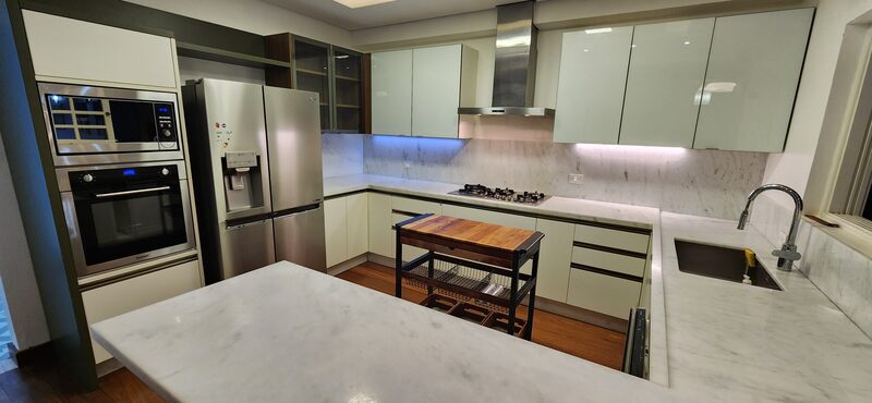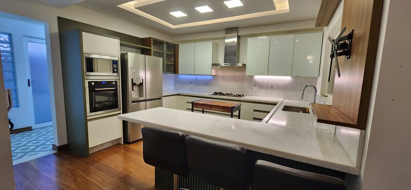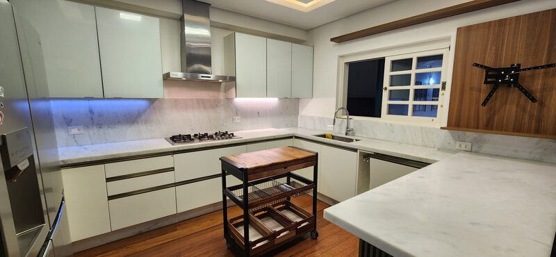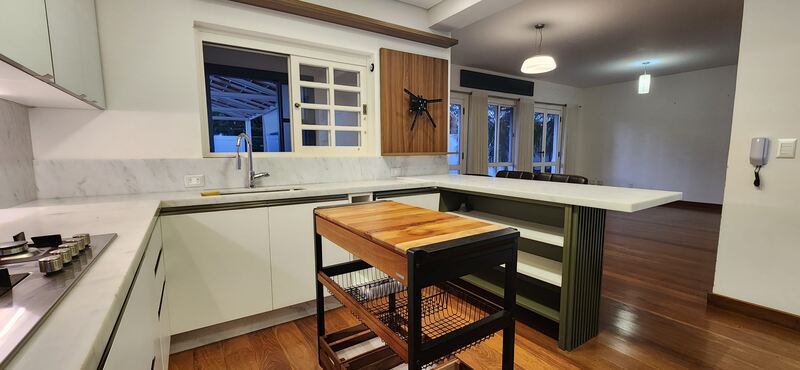 Possui 3 vagas para carros e sistema de alarme! O piso é flutuante na parte social.