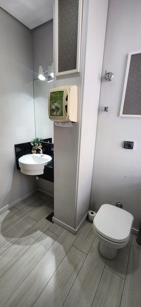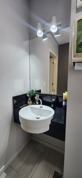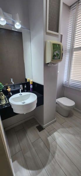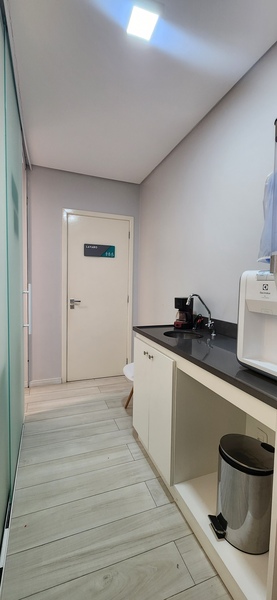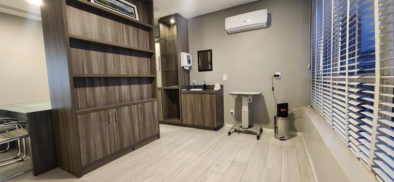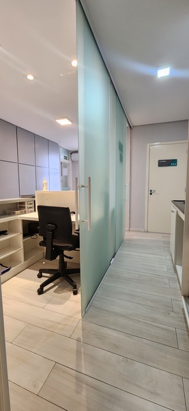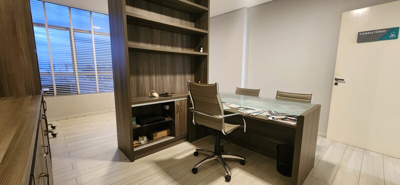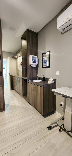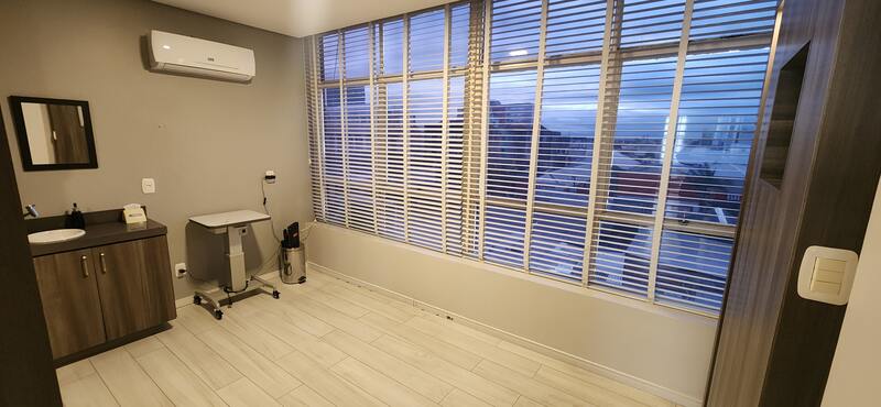 A sala está localizada em região de alta expansão comercial. São 45m² privativos distribuídos em sala de espera com luzes de led, gabinete, sala de procedimentos, almoxarifado e um lavabo. Toda revestida em porcelanato. Ficam todos os móveis planejados!