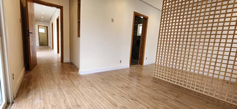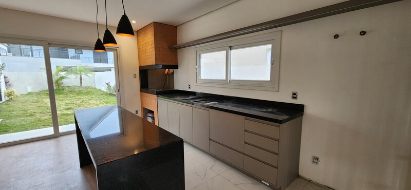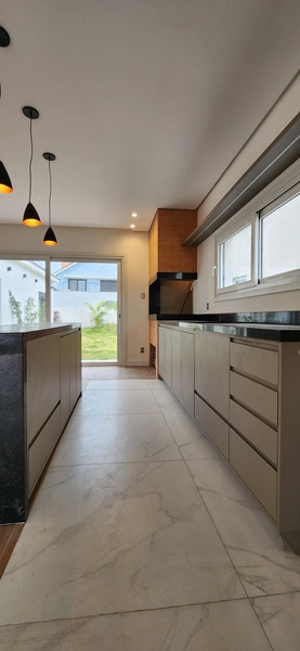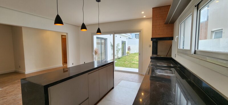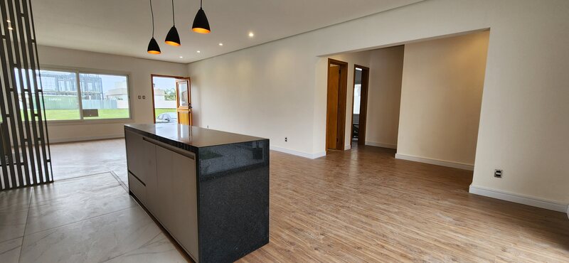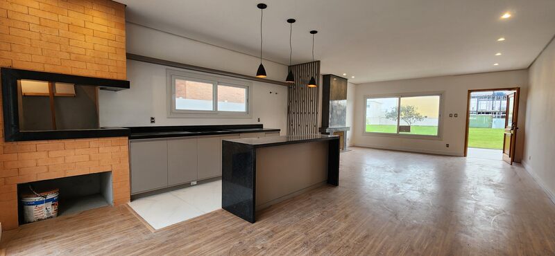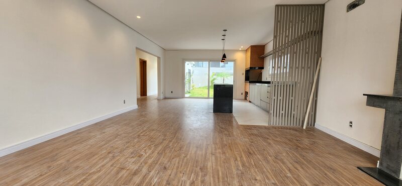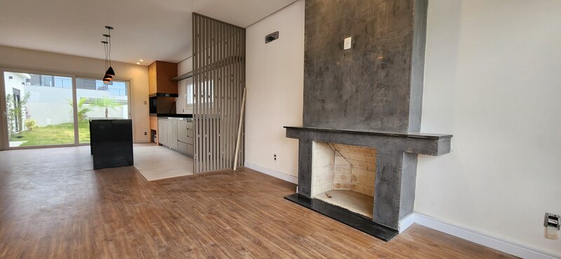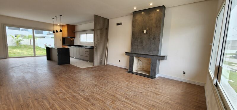 Casa térrea no Alphaville - Fase 1. São 195m² privativos distribuídos em sala com lareira, cozinha com conceito aberto, podendo de ser fechada, 3 dormitórios sendo todos suítes, pátio com espera piscina, 2 vagas para carros.
