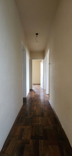 Localizado no 4º andar, o apartamento nos recebe com uma sala 2 ambientes; Pela sala podemos notar um corredor que nos leva à parte íntima do apartamento que conta com 3 dormitórios e 1 banheiro social que atende aos 3.