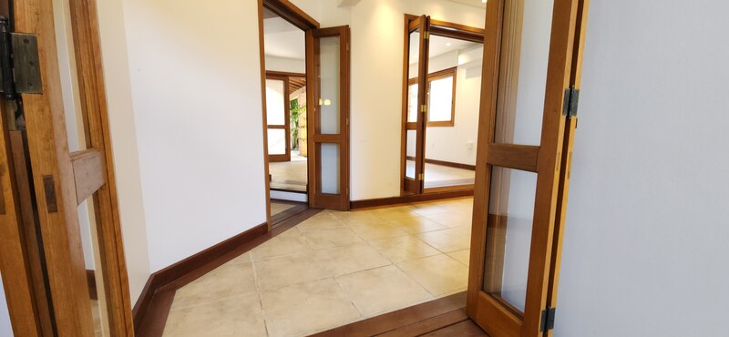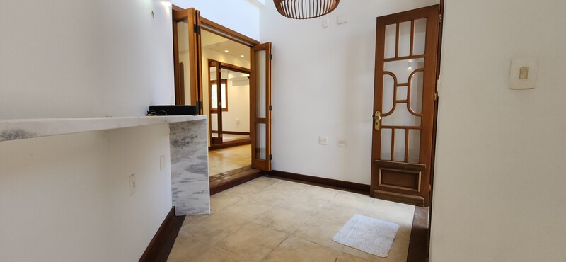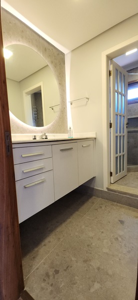 Tomando como base o hall de entrada, mas agora pela esquerda de quem entra, temos um lavabo super elegante e com pé direito alto que dá um ar de espaço no ambiente; Ao lado, temos uma sala íntima com lareira que você pode utilizar como escritório, ateliê ou ao que se adequar as suas necessidades;