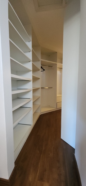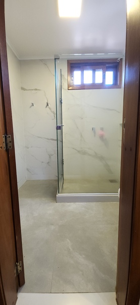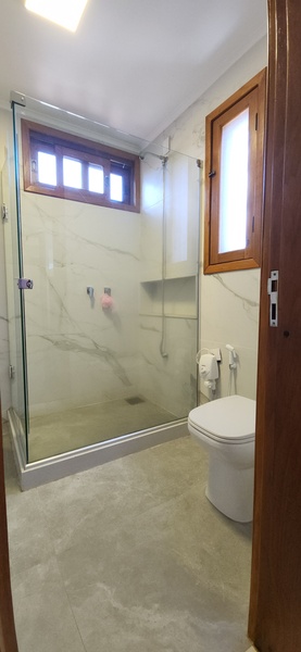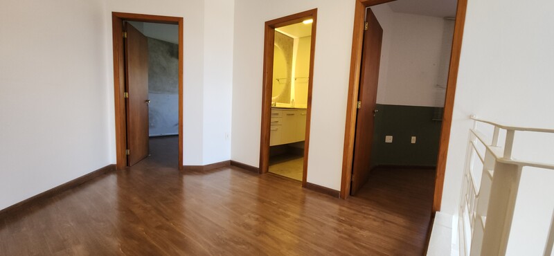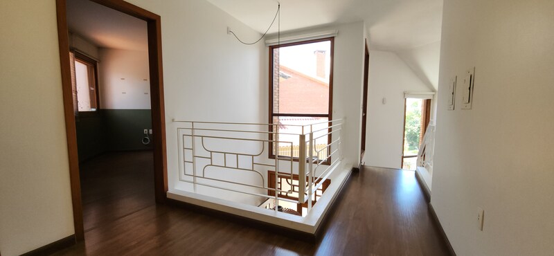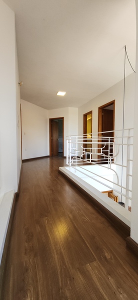 Ao subir as escadas, podemos notar uma boa área de circulação onde fica a parte íntima do sobrado; São 2 dormitórios individuais e 1 banheiro social que atende ambos sendo este divididido em 2 ambientes; A ampla suíte conta com banheiro completo + closet com tamanho ideial para guardar roupas de vestuário e outros pertences que desejar;