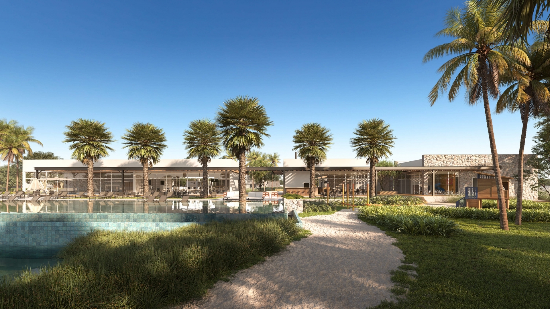 O condomínio está localizado na Av. Adolfo Fetter - principal via de acesso do Laranjal. Apresenta ampla área verde, lagos, praia privativa e ampla estrutura de lazer, conta com restaurante, espaço cinema, salão de festas, espaço gourmet, salão de jogos, bar na piscina, espaço fitness, vestiários, sauna, piscina térmica com SPA, solarium, piscina infantil, piscina de borda infinita com raias, espaço kids, praia artificial, espaço beach tennis, portaria 24h e muito mais!