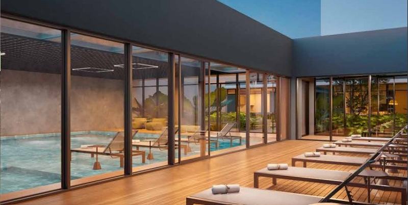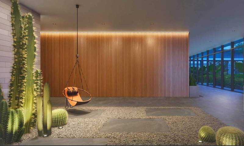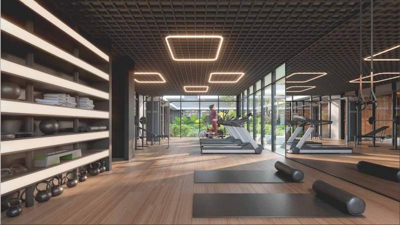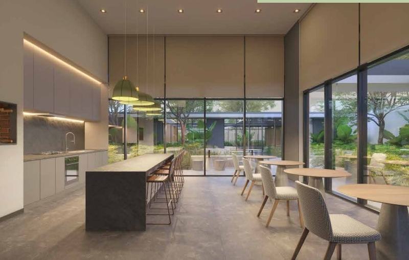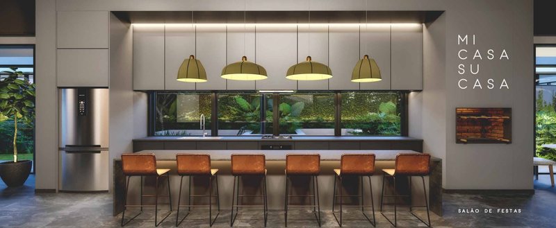A área condominial é composto no térreo de um hall integrado das três torres por um promenade, com acesso tanto a partir da Rua Dois - frente parque, como a partir da Av. São Francisco de Paula (com eclusa), que conecta e articula as demais áreas condominiais internas e externas, sendo elas: piscina coberta aquecida, solário, storage, espaço gourmet, salão de festas, área kids, academia, bicicletário, três quiosques externos com churrasqueira, estar nas águas, lounge externo, playground externo, área de alongamento e treino funcional externa.
