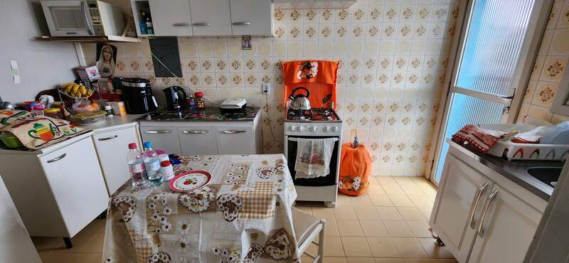 Ao entrar no imóvel podemos vislumbrar uma sala em um bom estado de conservação, lareira de alvenaria; ao lado da sala temos a cozinha que nos leva ao ambiente da área de serviço e dependência completa.
