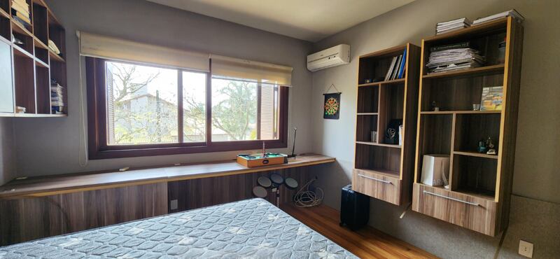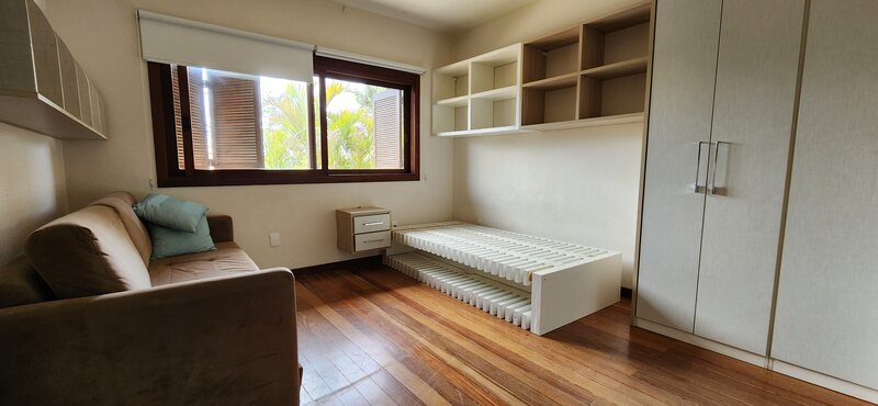No segundo andar: Temos uma boa área de circulação e um corredor que nos leva aos 4 dormitórios sedo 1 suíte que possui closet + banheiro completo com banheira de hidro; o banheiro social atende aos 3 dormitórios individuais;
