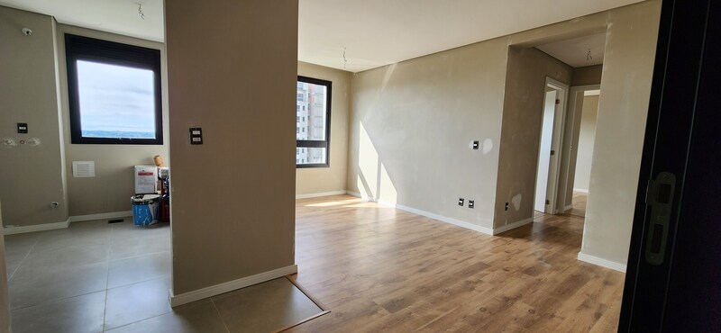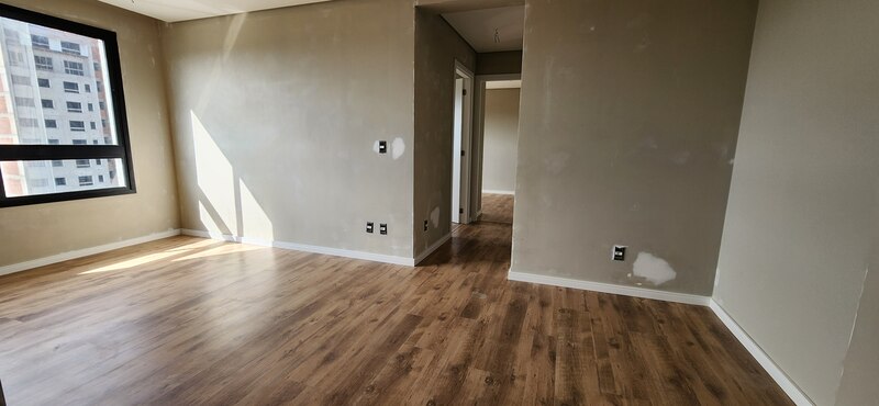 São 62m² de área privativa, o imóvel dispõe de 2 dormitórios sendo 1 suíte, banheiro social, sala 2 ambientes e cozinha integrada com churrasqueira e área de serviço. E além disso, piso flutuante nos ambientes de estar e íntimo, e piso porcelanato na cozinha e banheiros.