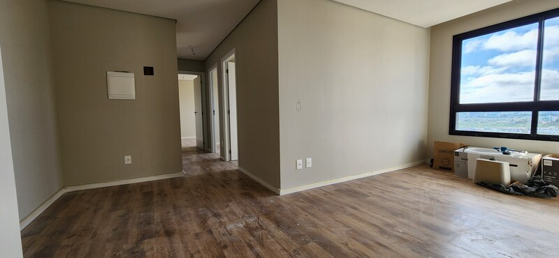 São 74m² de área privativa, o imóvel dispõe de 3 dormitórios sendo 1 suíte, banheiro social, sala 2 ambientes e cozinha integrada com churrasqueira e área de serviço. E além disso, piso flutuante nos ambientes de estar e íntimo, e piso porcelanato na cozinha e banheiros.
