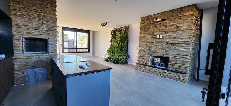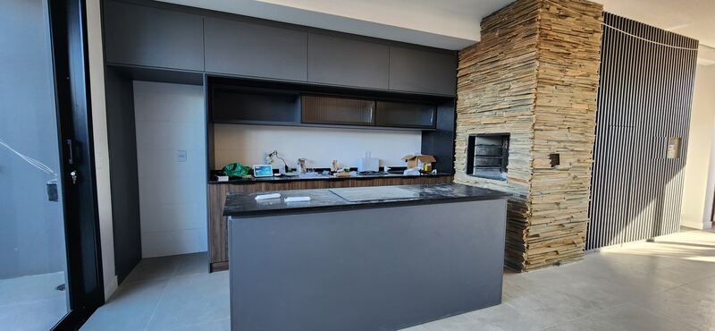 O imóvel possui 195m² de área privativa partilhados em, sala 2 ambientes com lareira, cozinha integrada com churrasqueira.
