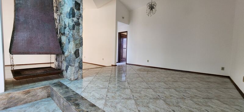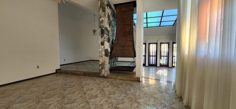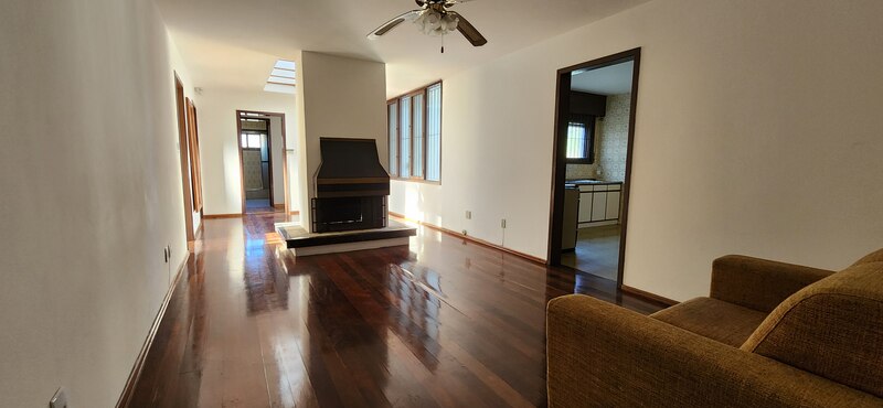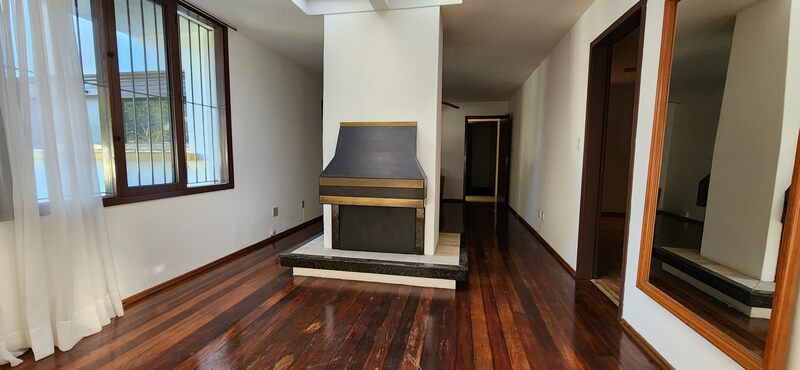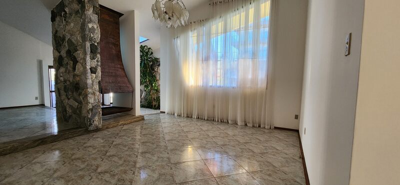 O imóvel possui 355m² de área privativa, possui 3 dormitórios sendo 3 suítes, uma sendo com banheira de hidromassagem, ampla sala 2 ambientes e lareira, sala íntima também com lareira, sala de jantar, copa/ cozinha, lavabo, banheiro social e auxiliar, área de serviço, dependência completa, despensa, lavanderia, escritório, pátio, jardim, laje, grade nas janelas, possui sistema integrado de segurança com alarme e interfone.