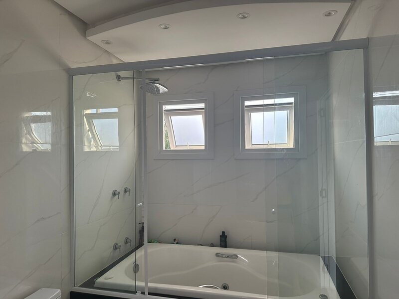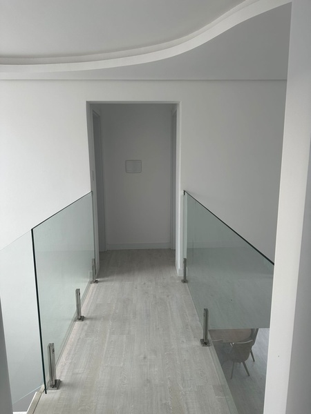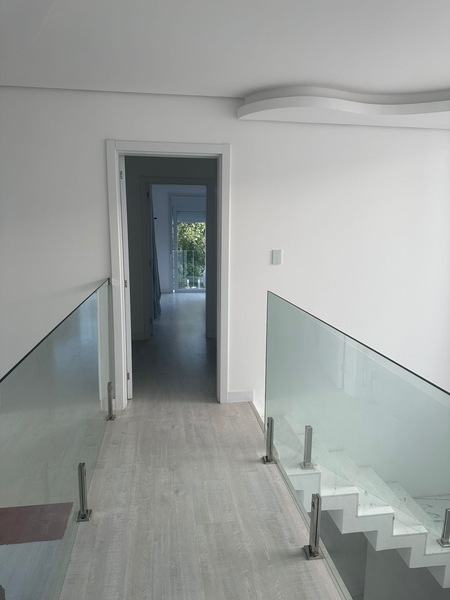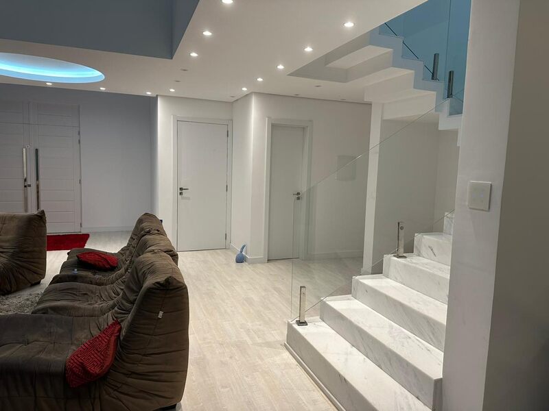 A escadaria em mármore meio esquadria na lateral da sala nos leva até o pavimento superior onde encontra-se a área íntima da residência em que possui 3 suítes, sendo elas uma suíte master principal com espaçoso banheiro, banheira de hidromassagem e 2 closet completos.