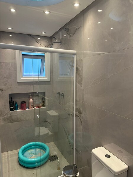 O imóvel possui 2 vagas de garagem cobertas, aquecimento a gás em todas as torneiras e chuveiros, aquecimento solar, piso flutuante em todo os andares e banheiros com piso porcelanato.