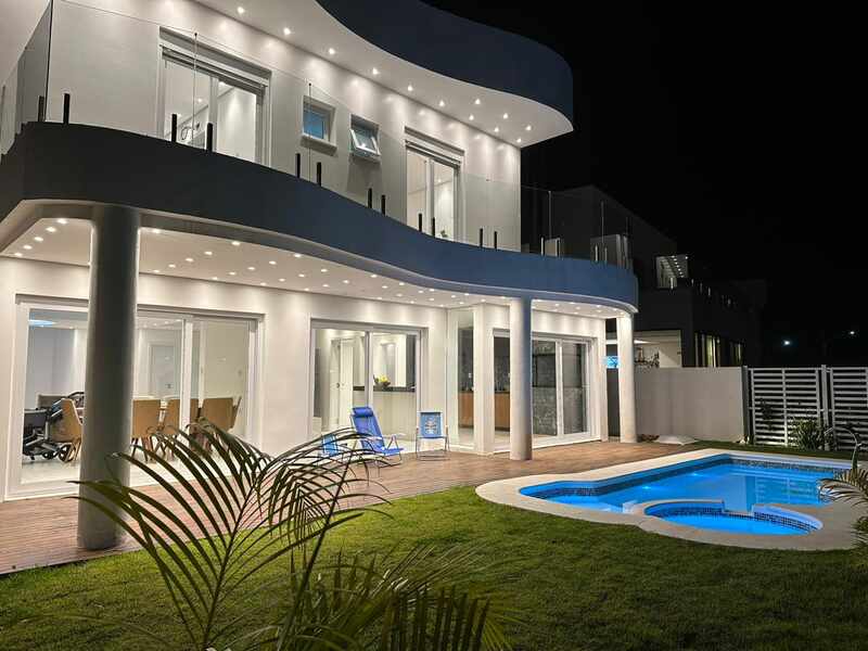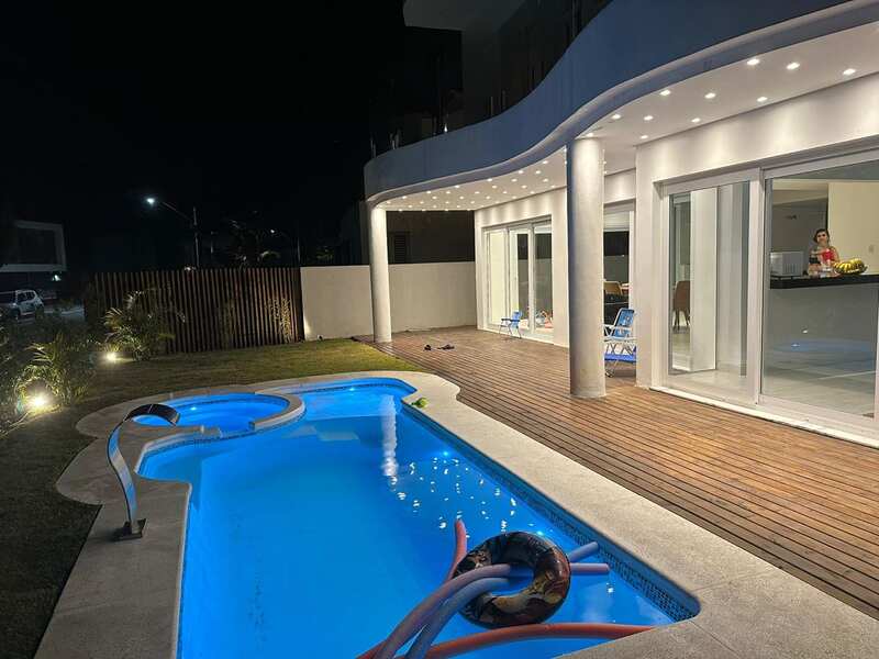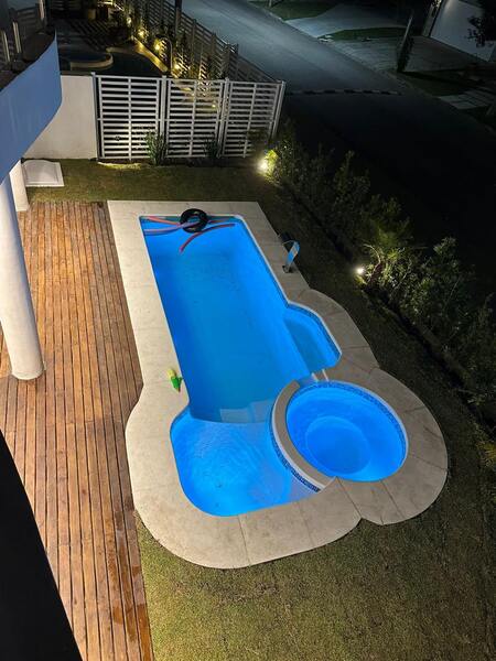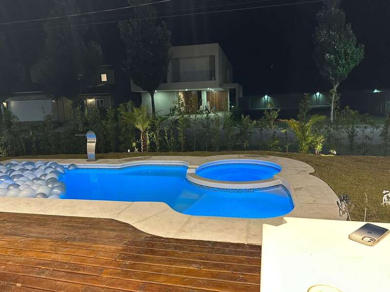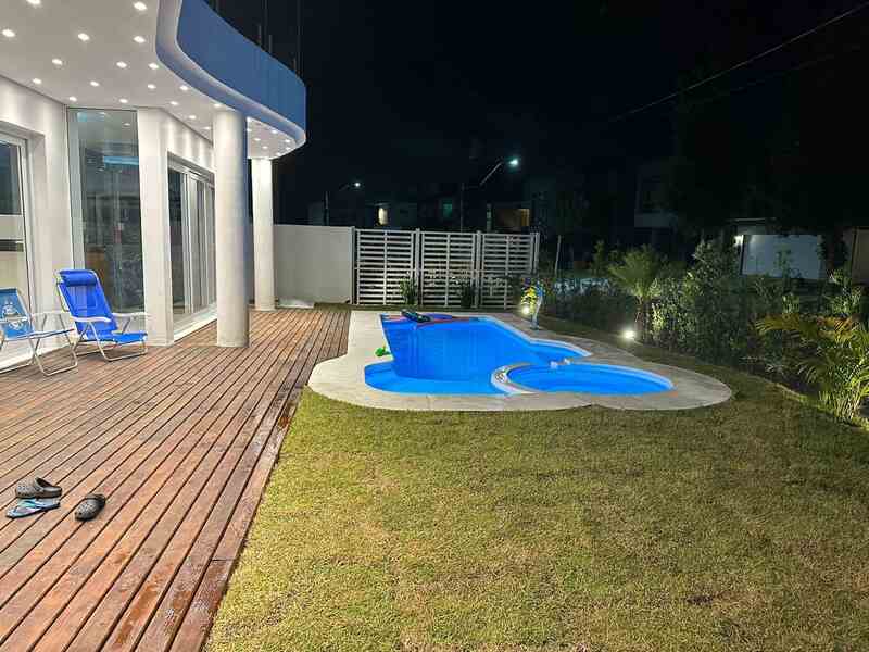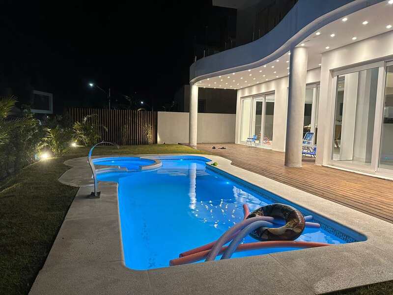 Na área externa da casa, o imóvel conta com um espaço de lazer para a família, jardim, piscina térmica de alto padrão com modelo premiado no exterior.