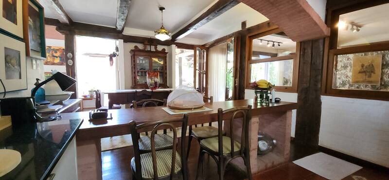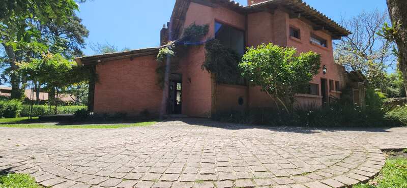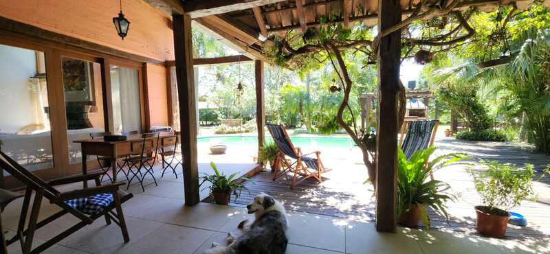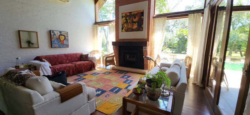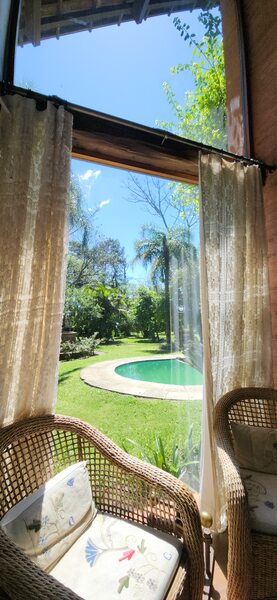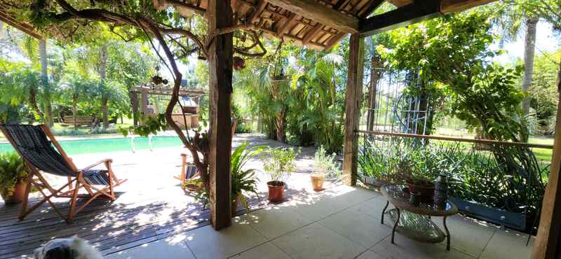 Na parte externa, o imóvel possui um excelente espaço de lazer com jardim, piscina, quiosque com churrasqueira, poço artesiano e casa para o caseiro.