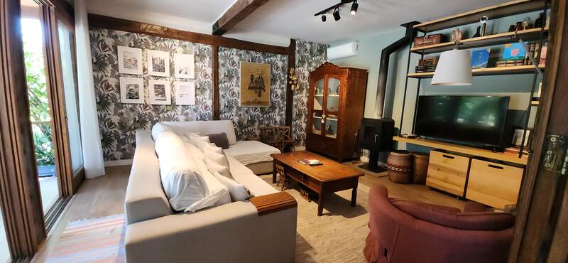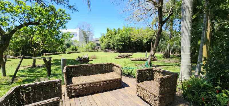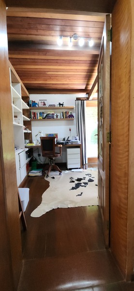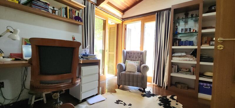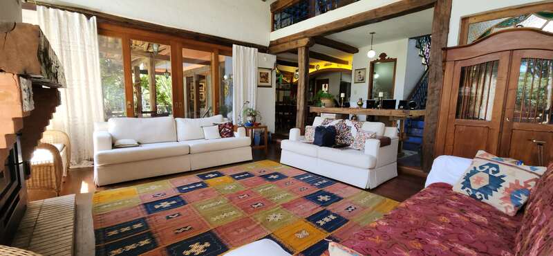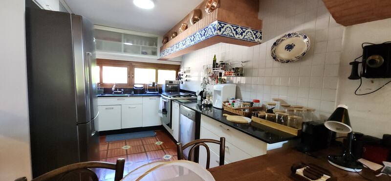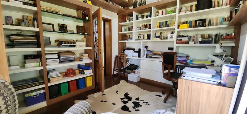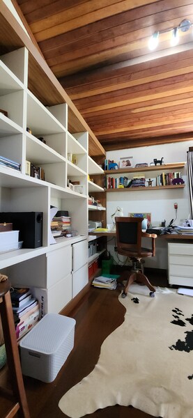O imóvel no térreo conta com uma ampla sala de estar com lareira e espaço jantar, possui cozinha planejada integrada, dependência completa e escritório.