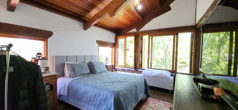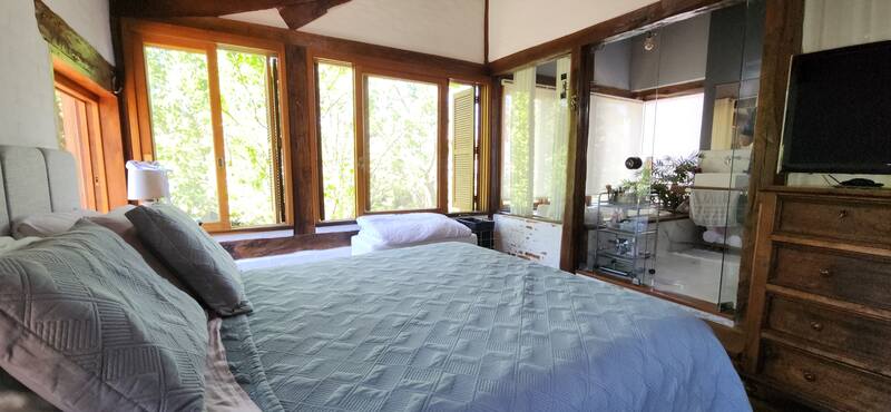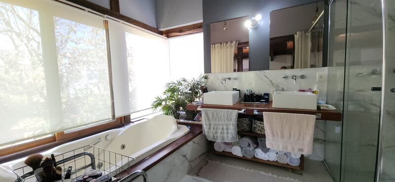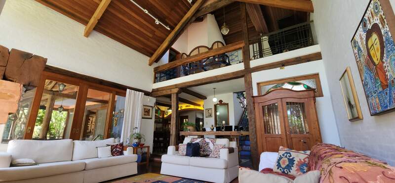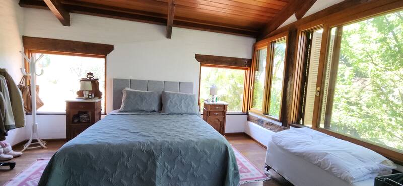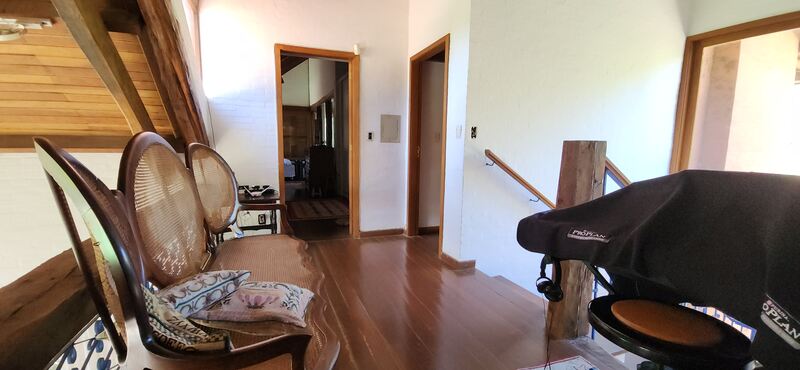 No segundo andar, possui duas suítes completas, sendo uma com banheira de hidromassagem e a outra com sacada com vista para o amplo jardim.