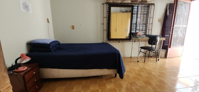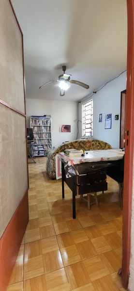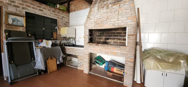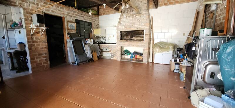 Aos fundos possui um amplo pátio com salão de festas, banheiro social, churrasqueira e uma peça para depósito.