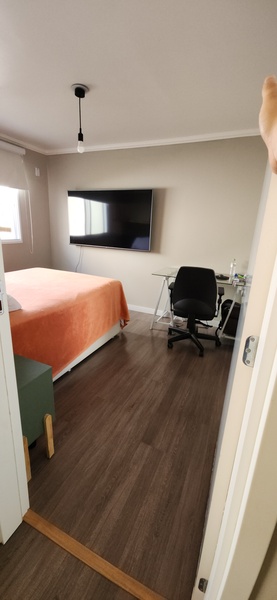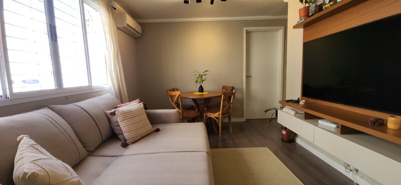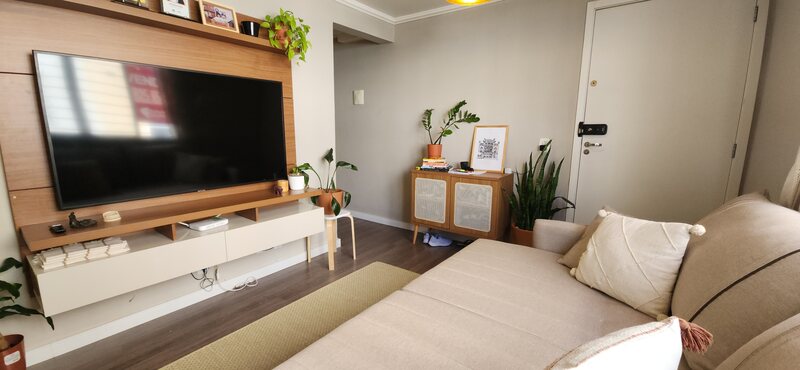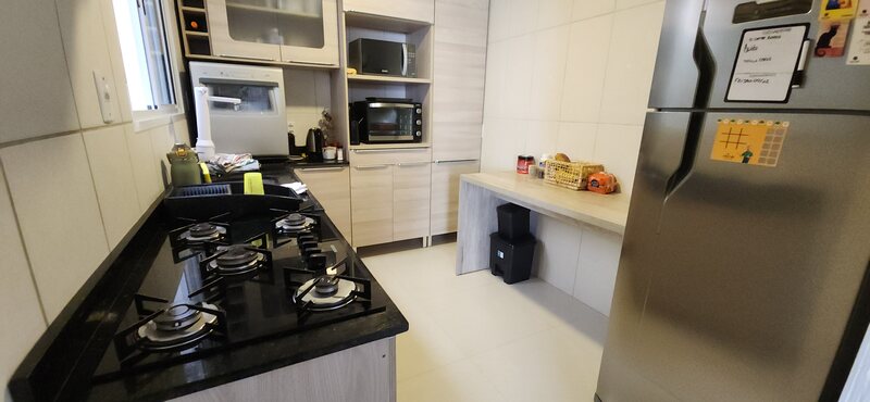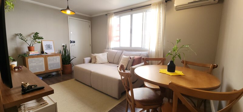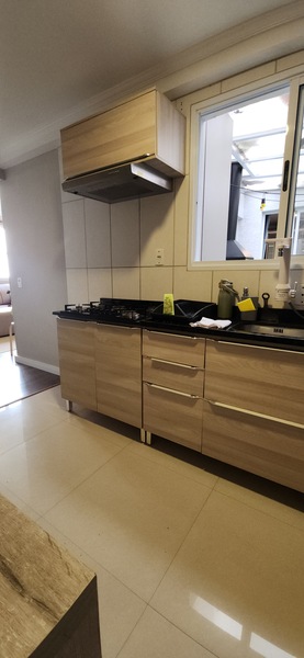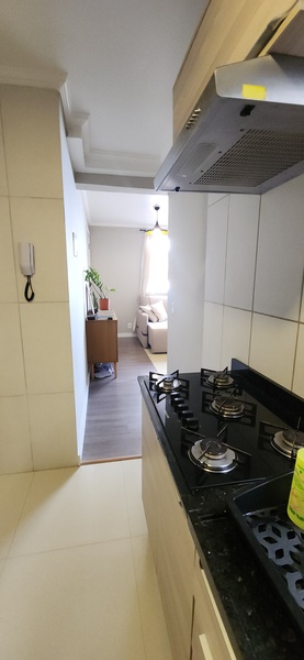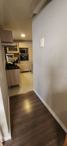 São 57m² de área privativa, o apartamento conta com sala de estar, copa/cozinha planejada, churrasqueira, área de serviço, 2 dormitórios, banheiro social.