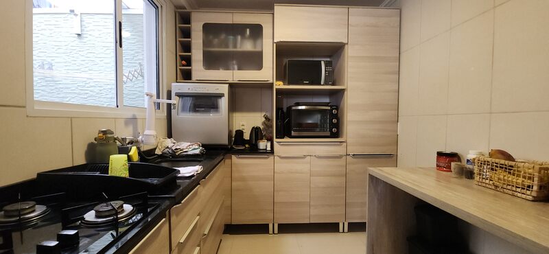 O condomínio possui portaria 24h, portão eletrônico, quadra poliesportiva, quiosque, salão de festas, interfone e jardim.