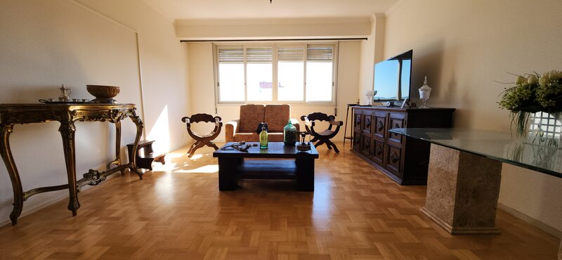 São 143m² de área privativa, sendo uma sala 2 ambientes, cozinha, área de serviço, banheiro social, 3 dormitórios sendo 1 suíte, e wc auxiliar.