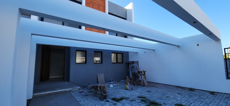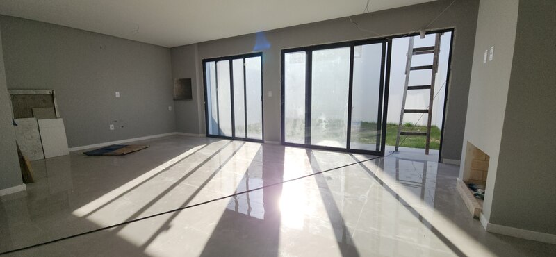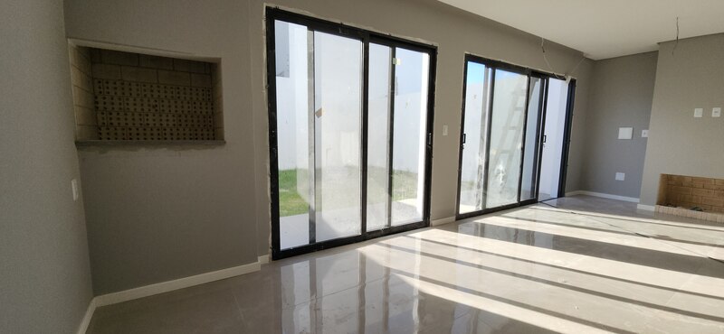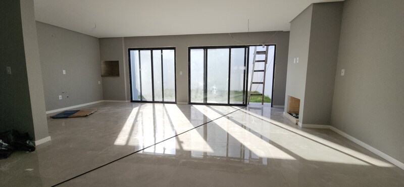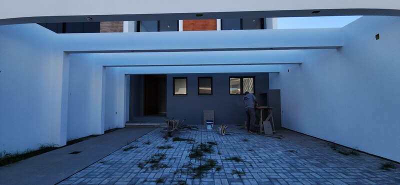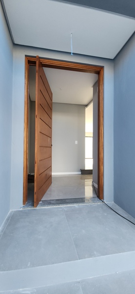 Na parte externa, possui um pátio aos fundos. A residência também dispõe de garagem para dois veículos. Construção em padrão A, com ótima orientação solar, iluminação externa em LED, aquecimento de água a gás e esperas para ar-condicionado tipo split em todos os ambientes.