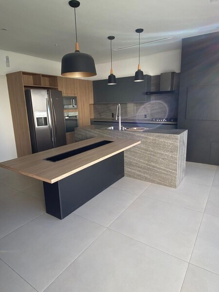 A cozinha é equipada com churrasqueira e eletros da linha embutida Electrolux Home Pro. O conforto térmico é garantido por 5 aparelhos de ar-condicionado distribuídos entre os quartos, sala e cozinha.