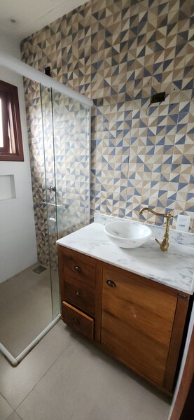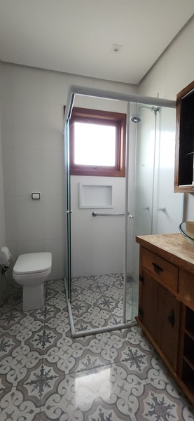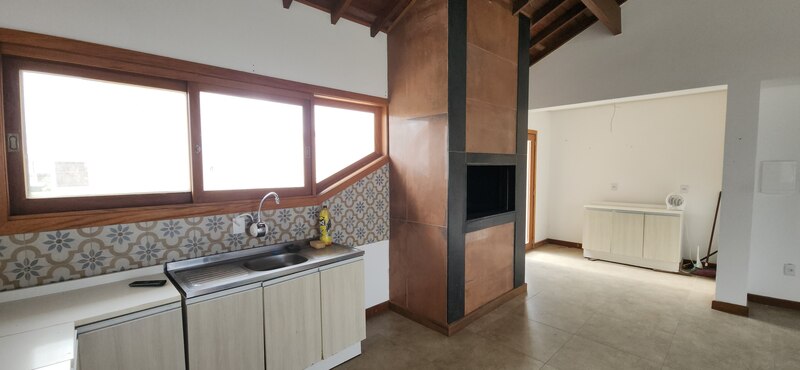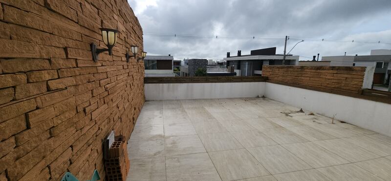 No segundo pavimento, a casa conta com um amplo salão de festas, equipado com bancada, pia e churrasqueira, sendo ideal para receber amigos e familiares. Esse ambiente tem acesso a dois terraços, que proporcionam excelente ventilação cruzada e boa entrada de luz natural. Ainda nesse andar, há um dormitório adicional e um banheiro social completo, o que amplia a possibilidade de uso do espaço.