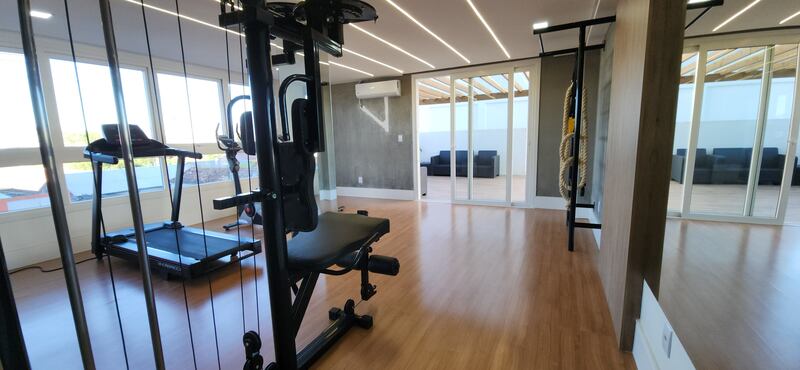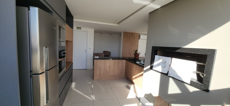 O apartamento conta com sala 2 ambientes, sacada com churrasqueira, copa/cozinha com acesso à área de serviço, banheiro social, 3 dormitórios sendo 1 suíte completa. Possui também espera para lareira e coifa, pré instalação para split em todas as depêndencias.
