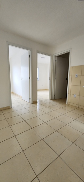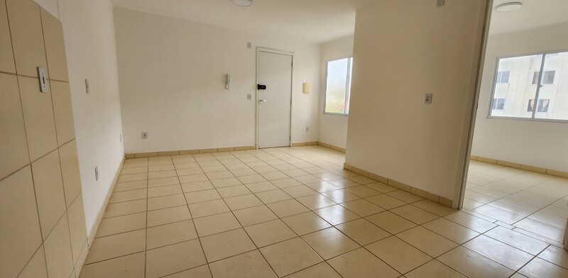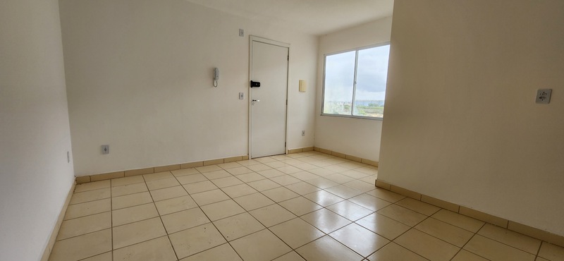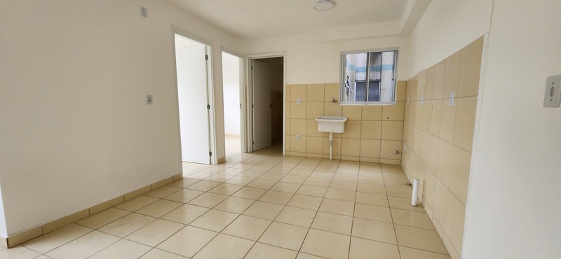 São 45m² de área privativa, o apartamento é localizado no 3° andar, contém fechadura eletrônica, sala 2 ambientes, cozinha com área de serviço, banheiro social, 2 dormitórios.