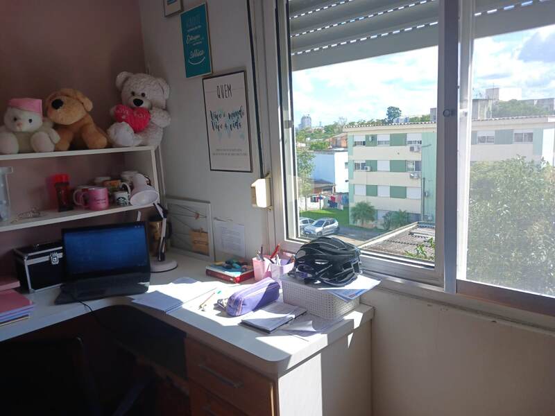 O apartamento localizado no 4° andar, possui 64m³ de área privativa, possuindo uma sala de estar, copa/cozinha, área de serviço, banheiro social, 3 dormitórios.