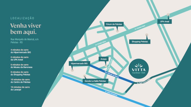 O condomínio Vitta Gardens Club reúne diversas áreas de lazer, convivência e segurança. O projeto inclui acesso principal, elevador, portaria 24h, bicicletário, edifício garagem, playground, espaço fitness, wellness center com salão de festas, pet care, sauna, spa, espaço gourmet, terraço e teens place. A área externa conta com piscina resort composta por piscina infantil e adulta, bar molhado, prainha, jacuzzi, solarium e espreguiçadeiras naturais. Também fazem parte da estrutura o pet agility, a quadra poliesportiva, oferecendo praticidade e lazer em um só lugar.