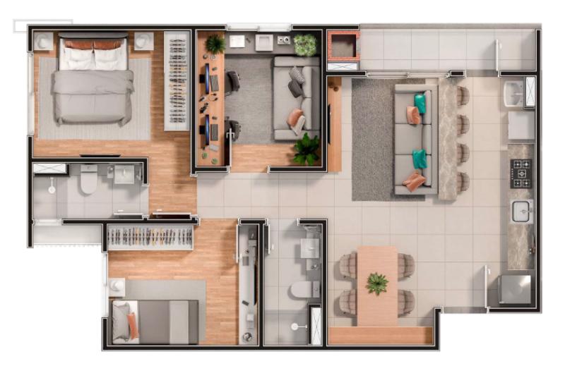 Apartamento de 3 dormitórios sendo 1 suíte à venda no Vittar Gardens - Pelotas/RS.