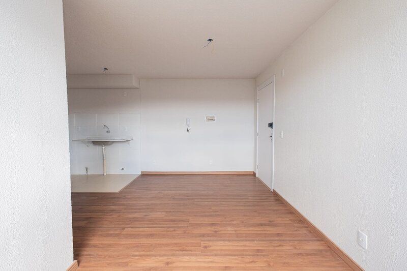 São 47m² de área privativa, distribuídos em sala 2 ambientes, cozinha integrada, área de serviço, banheiro social e 2 dormitórios.