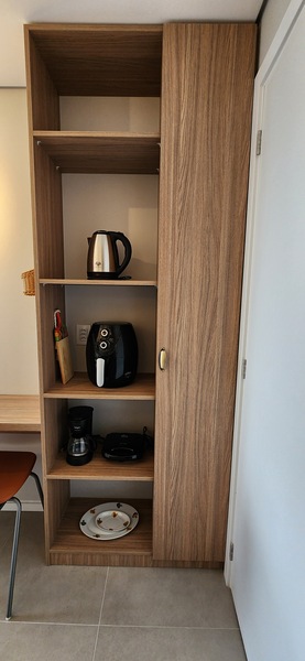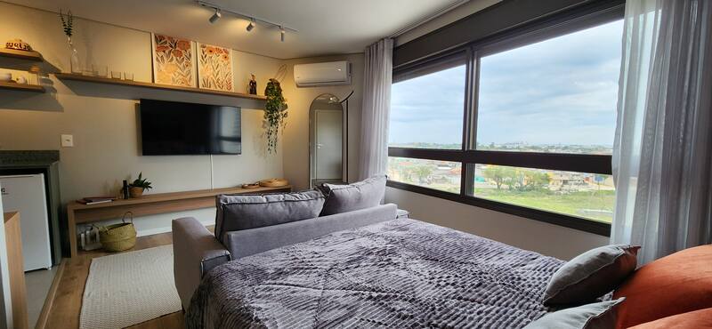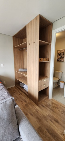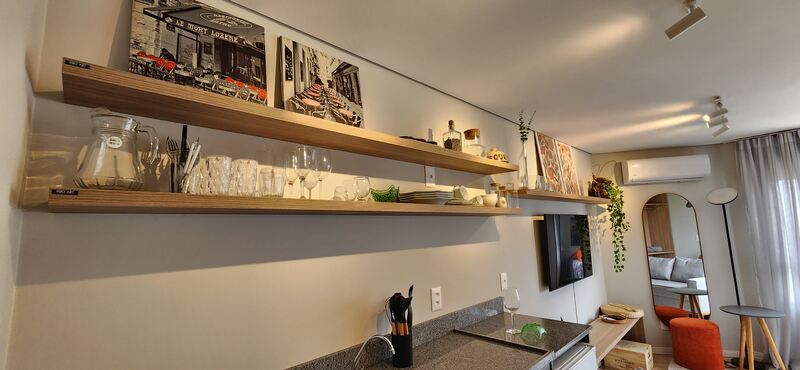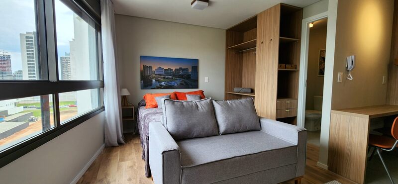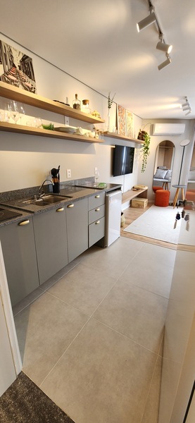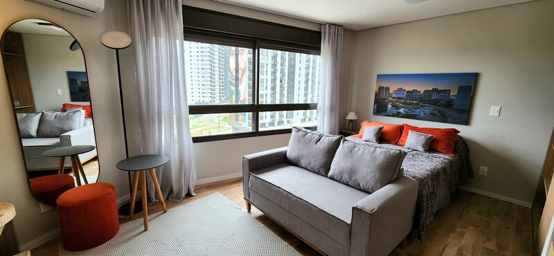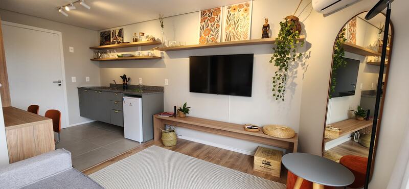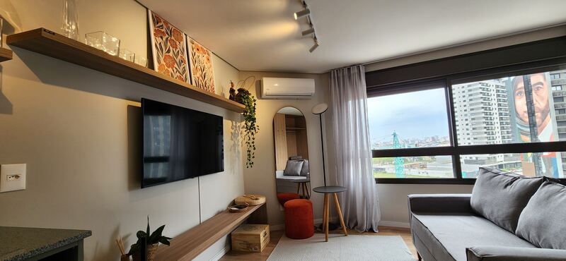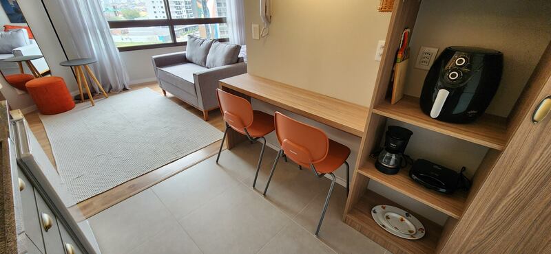 O studio é totalmente mobiliado, pronto para morar ou investir em Airbnb. Ambientes integrados conta com móveis planejados, além de 1 banheiro social.