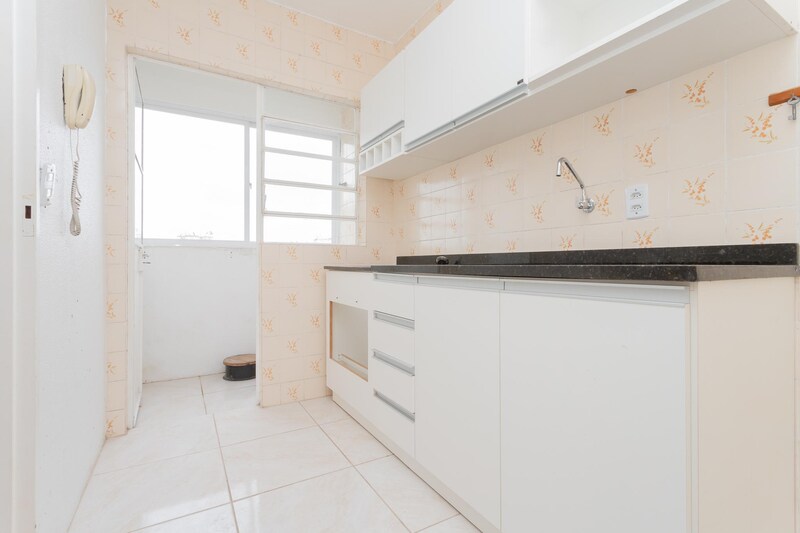São 48m² de área privativa, distribuídas em sala 2 ambientes, copa/cozinha planejada, área de serviço, 2 dormitórios.