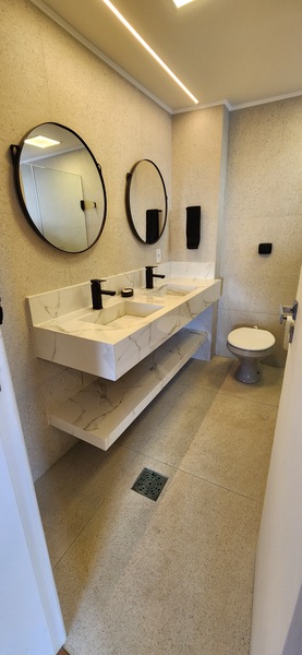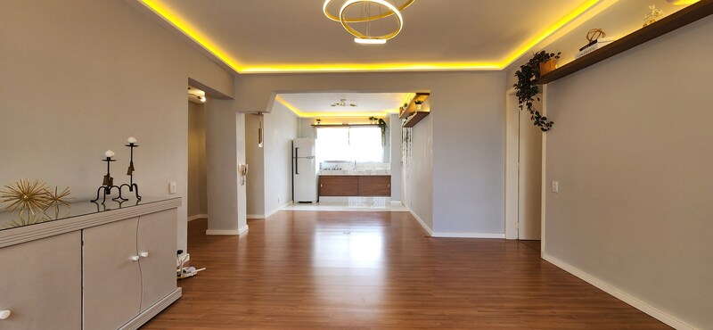 São 110m² de área privativa, localizado no 5° andar, o apê possui sala 2 ambientes, cozinha integrada planejada, área de serviço, banheiro social, lavabo, 3 dormitórios sendo 1 suíte completa.