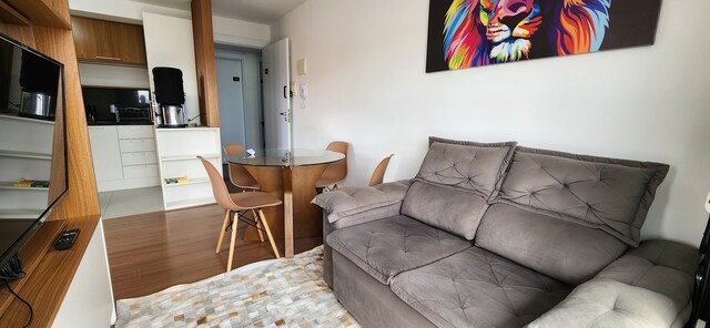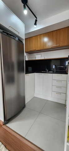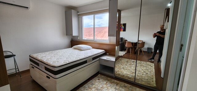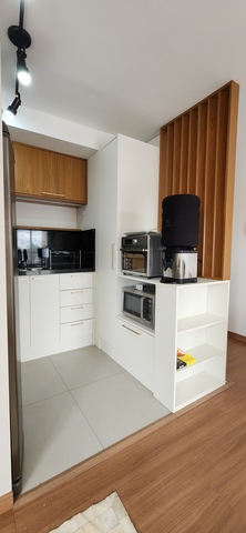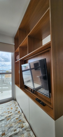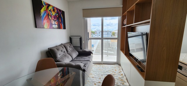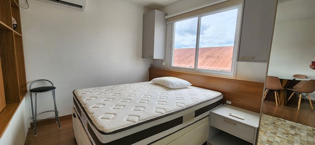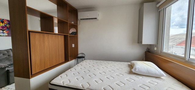 Studio no Ello Pelotas, com sacada e churrasqueira, móveis planejados e excelente iluminação natural.