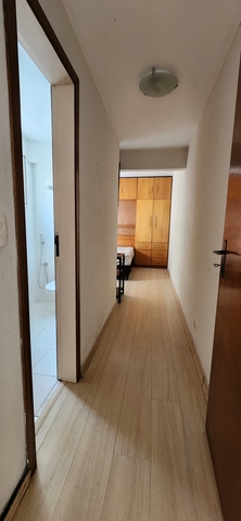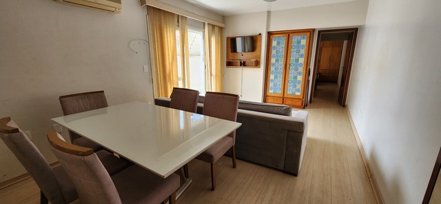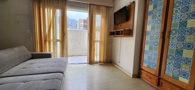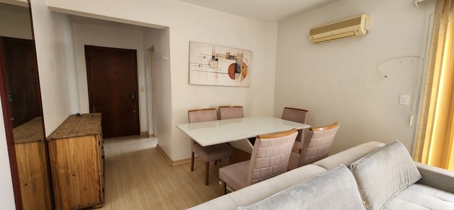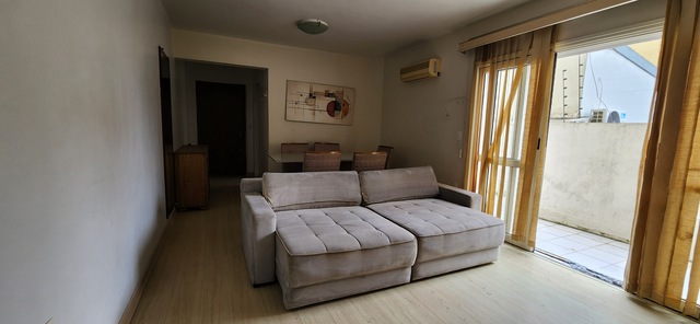 Apartamento com 71m² privativos, com sala em dois ambientes, cozinha com área de serviço, banheiro social e 1 dormitório.