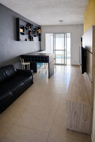 O imóvel conta com 2 quartos, sendo 1 deles com painel de TV em MDF, sala de estar com rack planejado e cozinha com móveis sob medida em MDF, trazendo mais funcionalidade ao dia a dia. O banheiro possui box de vidro e armário planejado com espelho.