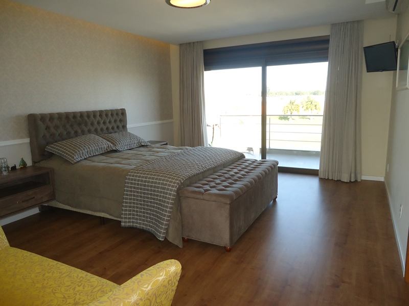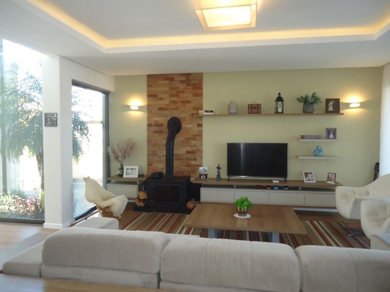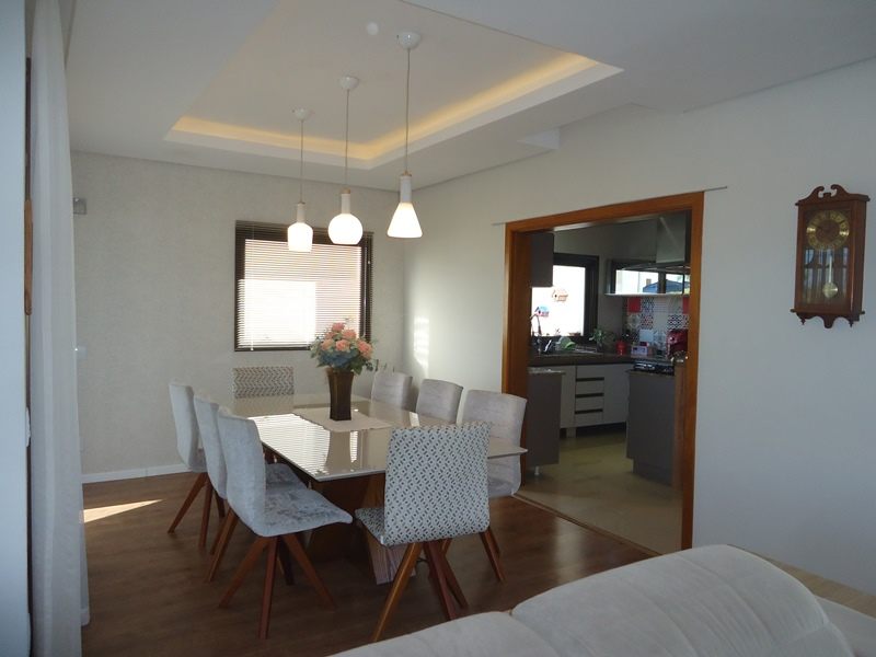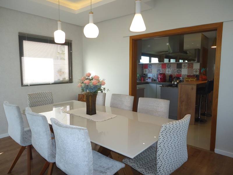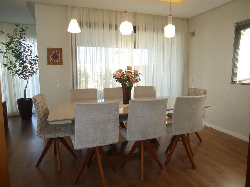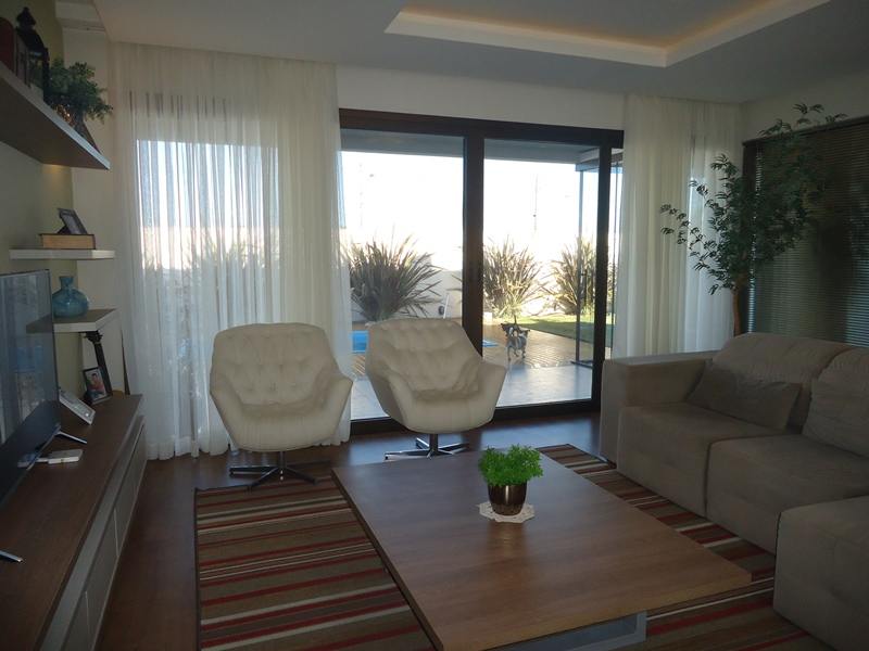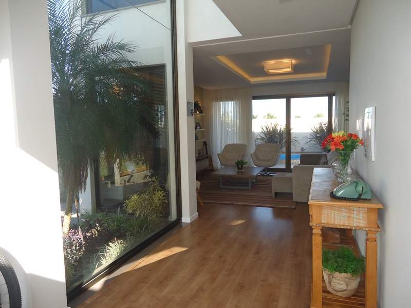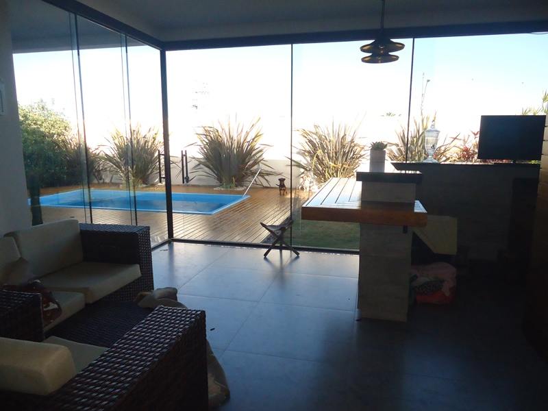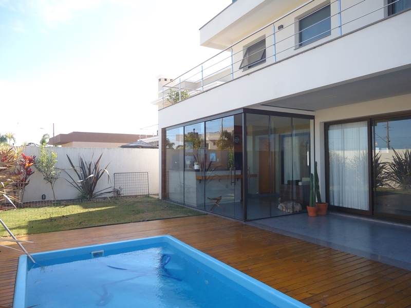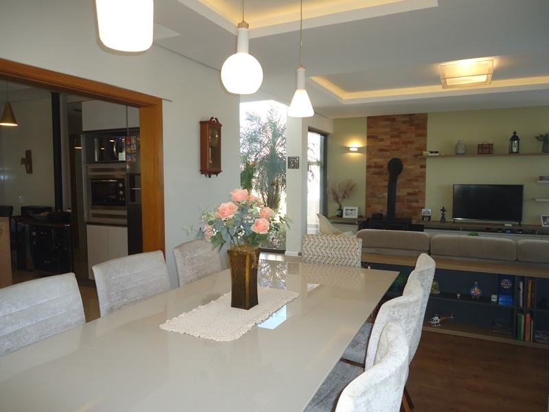 Sobrado alto padrão à venda no Alphaville Pelotas. São 418m² de área total, sendo 275 de área privativa distribuídos em hall de entrada, sala 2 ambientes com calefator, lavabo, copa/cozinha totalmente planejada, 3 dormitórios sendo 2 suítes, banheiro íntimo completo. Na área externa, o imóvel dispõe de ampla varanda com área gourmet e churrasqueira, piscina térmica e jardim com ótimo espaço para desfrutar e reunir os amigos; Área de serviço e 3 vagas cobertas para veículos. Condomínio fechado com portaria 24hs, clube completo, salão de festas, espaço gourmet com churrasqueira, espelhos d'agua, piscina e muito mais. Ficam todos os móveis planejados.